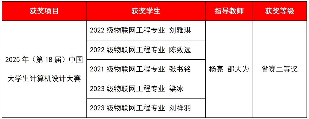 近日,2025年(第18届)中国大学生计算机设计大赛(省赛)落下帷幕。我校智能制造与交通工程学院师生凭借出色的专业素养与创新实践能力,荣获省级二等奖。这是继今年在全国“斯维尔杯”数字城市创新技术与应用大赛、南方测绘杯”省大学生测绘学科创新创业智能大赛、“立德杯”程序设计大赛中接连获奖后,该学院获得的又一项重要荣誉。
