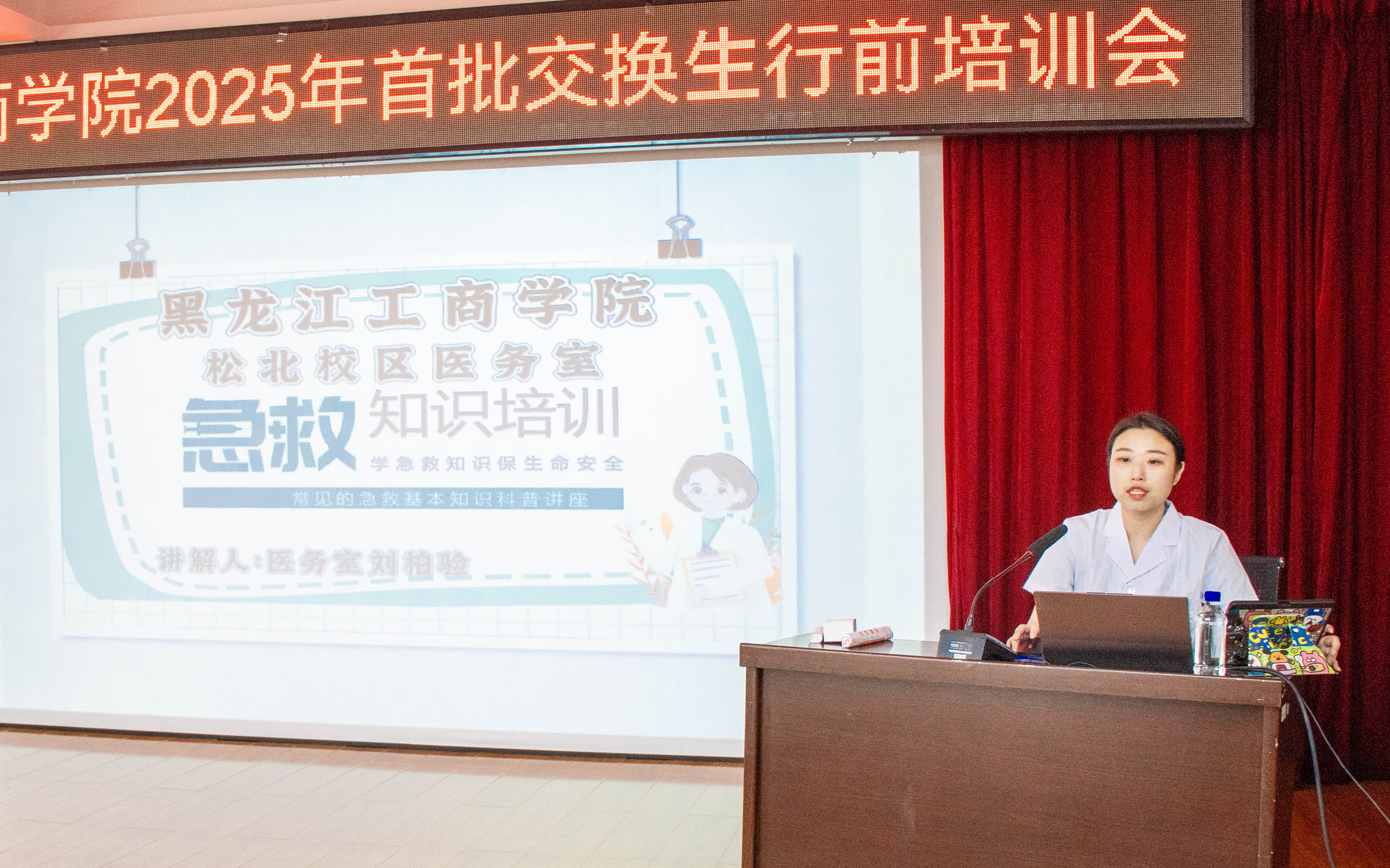 为提升学生的综合素养与应对能力,培训会还设置了专题讲座环节。宣传部部长周维佳以“跨文化交流中的责任与担当”为主题,引导学生在开阔国际视野的同时,保持文化自信,增强思辨能力,自觉维护国家形象。校医刘柏验为同学们带来了实用的急救知识培训,通过理论讲解与现场演示,教授了心肺复苏、意外伤害处理等关键技能,有效提升了学生们的应急自救能力。
