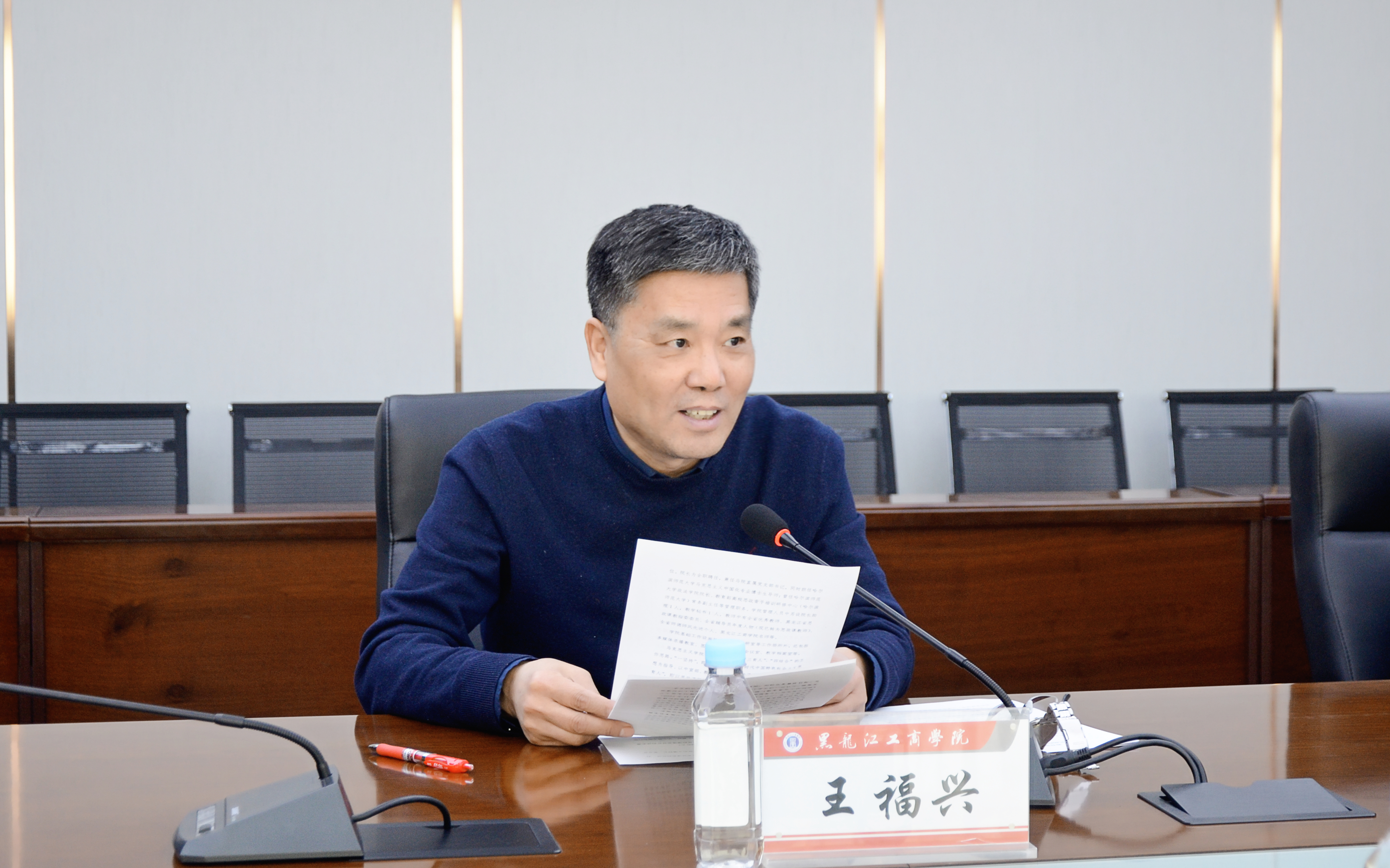 马克思主义学院院长王福兴围绕学院高质量发展目标,从夯实马院内涵式发展基础、深化“一坚持、三育人、四结合”教学特色、加强思政课教师队伍建设、推进“大思政课”工作体系建设和大中小学思政课一体化发展等方面,作思政课建设专题汇报。副校长邵雪航从健全教职工思想政治和师德师风考核机制、开展省校两级师德先进评选推荐、组织师德师风和廉洁教育专题讲座及规范有序开展相关活动等方面,作本年度师德师风建设专题汇报。