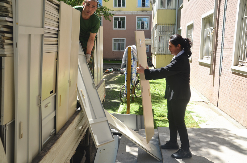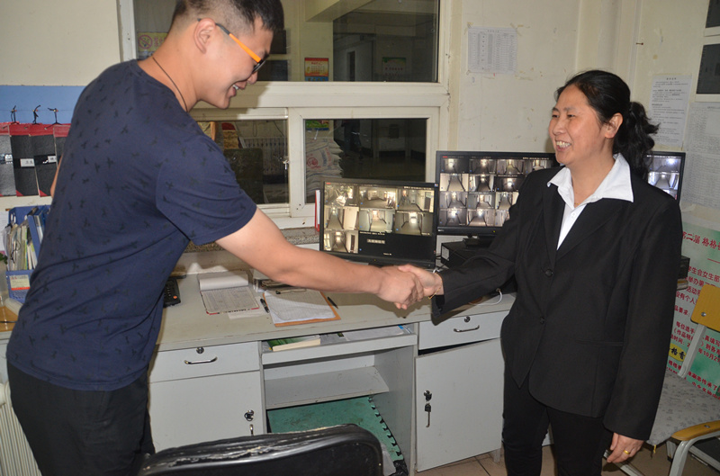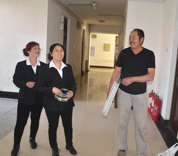 早晨6点30。刚刚走进二号学生公寓门口,就看到被学生亲切称为“暖姨”的舍务管理员王爱平。为进一步改善学生住宿环境,宿舍管理中心这几天将统一更换原有老旧的学生桌椅。一大早,她便协助工人师傅们搬进搬出。小心嘱咐工人师傅慢些轻些,别碰到进出的孩子们。她看到我们,第一句话竟然是:“这些组装的桌柜都是不锈钢的,耐用结实,无任何污染!你们下学期的住宿条件会更好了!”