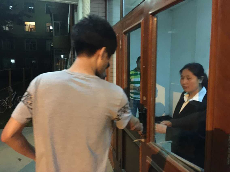 晚10点。阿姨本来应该休息了。但是仍有晚归的学生。面对我们的镜头,他们不好意思转过头。阿姨没说什么,先核对下身份,然后把门打开,一一登记信息,并耐心告知,学院的住宿管理规定。“没有办法,习惯了。这些孩子精力都旺盛,晚归是很平常的事情。不过现在好多了,将心比心,他们也觉得过意不去。”