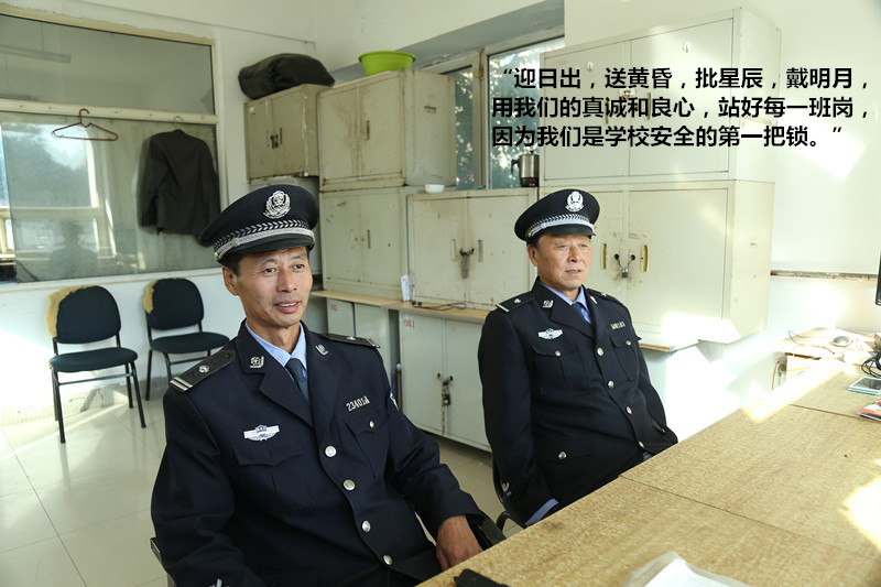 “迎日出,送黄昏,批星辰,戴明月,用我们的真诚和良心,站好每一班岗,因为我们是学校安全的第一把锁。”他们如是说:“我们这盯着紧点,不让可疑人员进入校园,校内的办公楼、宿舍楼里的人员就会轻松不少,校园内的就不会有不稳定的因素发生。节日里,我们能保障校园安全稳定了,就是对国庆节最好的回报了。”