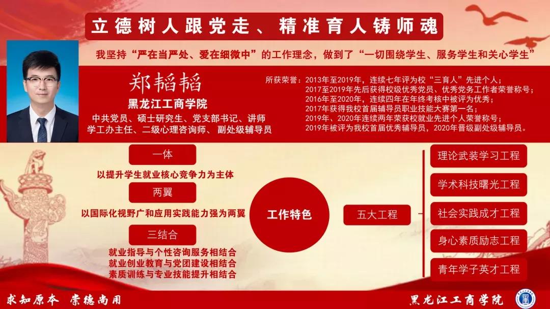 图说:我校经济与贸易学院副处级辅导员郑韬韬在第十三届“黑龙江省高校辅导员年度人物”暨2021年“龙江最美高校辅导员”评选中,喜获“黑龙江省高校辅导员年度人物提名奖”荣誉称号。