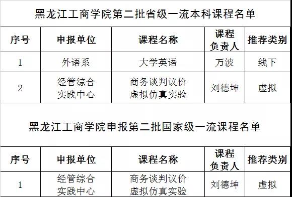 图说:在省教育厅组织的第二批一流本科课程评选中,我校推荐的大学英语、商务谈判议价虚拟仿真实验两门课程被认定为第二批黑龙江省一流本科课程。其中,线下一流本科课程一门、虚拟仿真实验教学一流课程一门。商务谈判议价虚拟仿真实验被黑龙江省教育厅推荐申报第二批国家一流课程。目前,我校已具有4门省级一流课程。