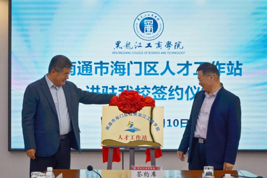 图说:5月10日,南通市海门区人社局与学校共建人才工作站签约揭牌仪式举行,校地双方签订联合设立人才工作站合作协议,共同为南通市海门区人才工作站揭牌。南通市海门区人才工作站建立,将切实搭建起学校与海门地方政府、企业,资源共享、合作共赢的桥梁,同时也必将进一步加快学校融入长三角地区的步伐,为产教融合园区建设注入更多的动力。