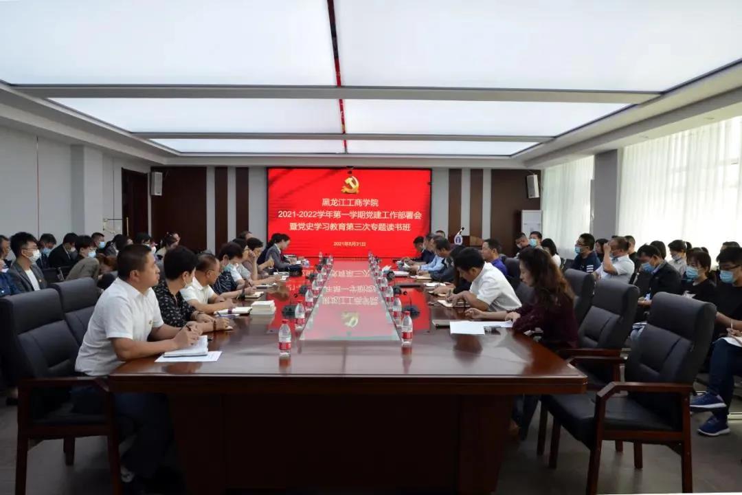 图说:8月31日,我校召开2021年秋季学期党建工作部署会暨党史学习教育第三次专题读书班,深入学习贯彻习近平总书记“七一”重要讲话精神,安排部署本学期党建工作,交流分享“赓续精神血脉 凝聚奋进力量”井冈山党史学习教育实践研修活动心得体会,推动党史学习教育走深走实。