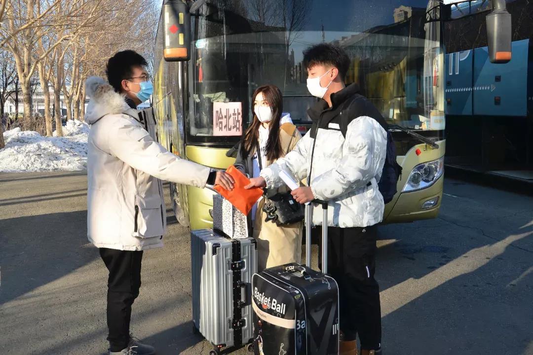 图说:在校园应急防控封闭管理期间,我校专门安排29辆“点对点”送站车,护送学生平安回家。为了确保全校学子归程顺利,按照错峰、错时要求,学校详细统计每位同学的离校时间、行程路线等,并建立“一人一档”离校信息台账,做到离校底数清、情况明、全程可追溯。同时,为每名学生做核酸检测,准备爱心礼包,包括医用口罩、消毒湿巾等防疫物资,发放《返乡小贴士》和《寒假防疫提示》等,做到疫情防控和学生平安离校两手抓、两不误。