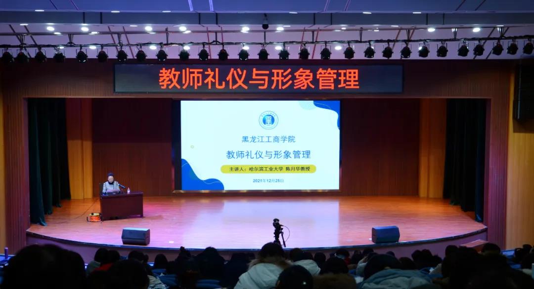 图说:12月25日下午,我校邀请哈尔滨工业大学二级教授、媒体技术与艺术黑龙江省级实验教学示范中心主任陈月华博士,在松北校区报告厅作题为《教师礼仪与形象管理》的专题讲座,助力广大教师加强师德建设,提升教师人文素养,培养教师良好的气质风度。