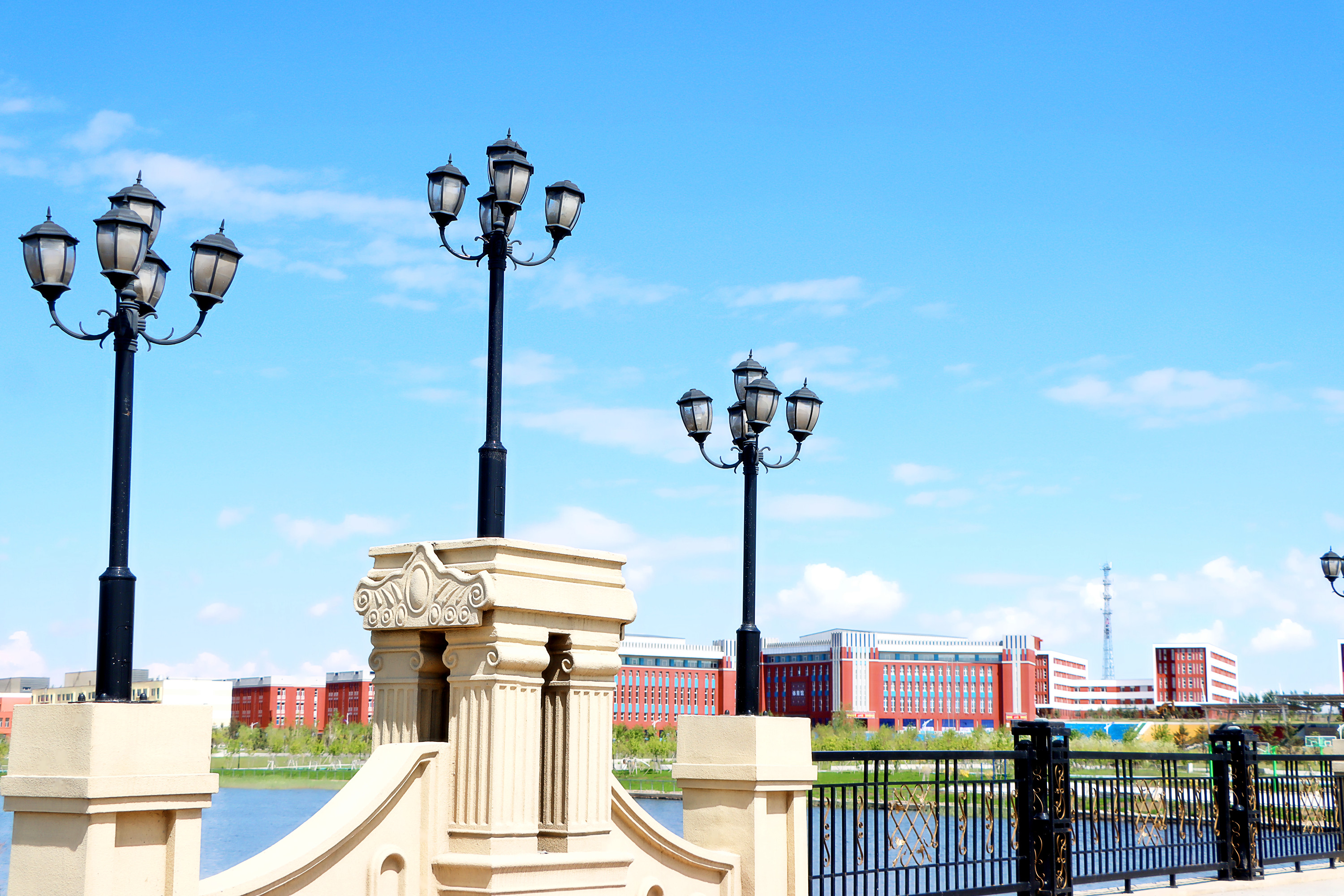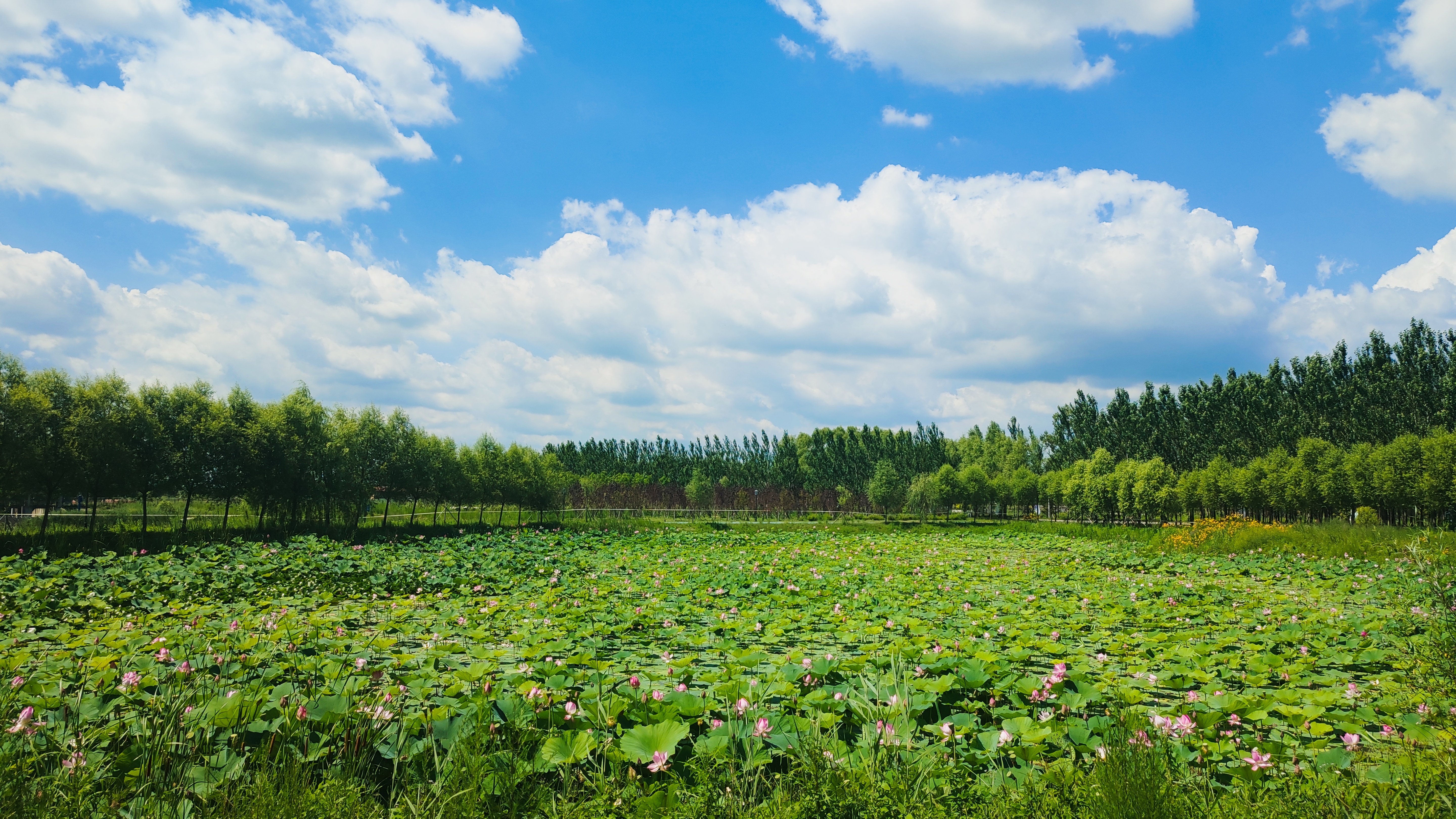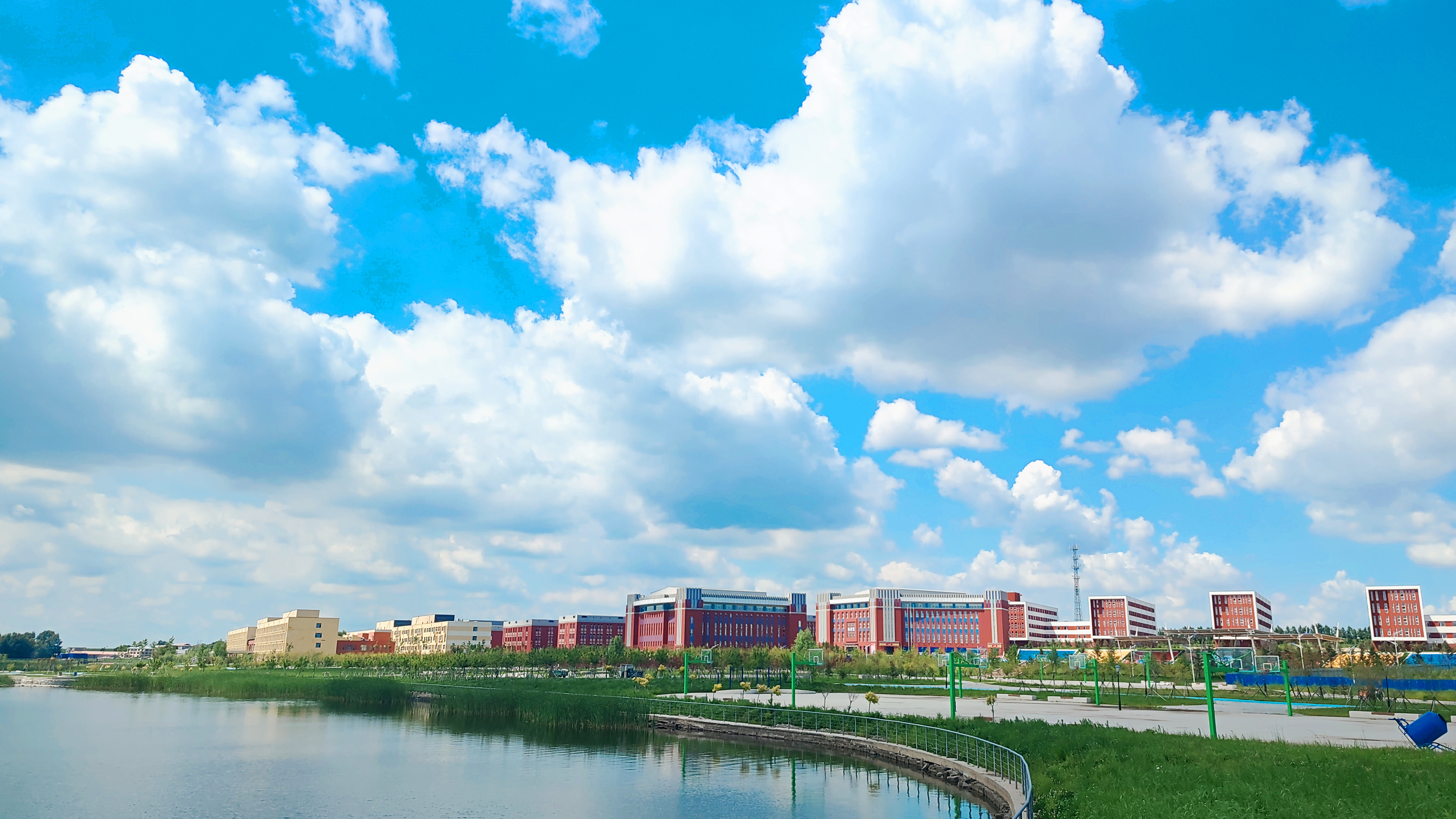 夏日荷塘,荷花尽绽放,宛若一幅雅致清新的水墨画。远处兴隆湖水色苍茫,浮云片片,水榭风微;近处荷叶田田,莲蓬悄然出水,青碧喜人。楼前有花,花后有湖,水汽清澄,一幅独家的校园画卷悄然铺开,自有妙处悠然会意。