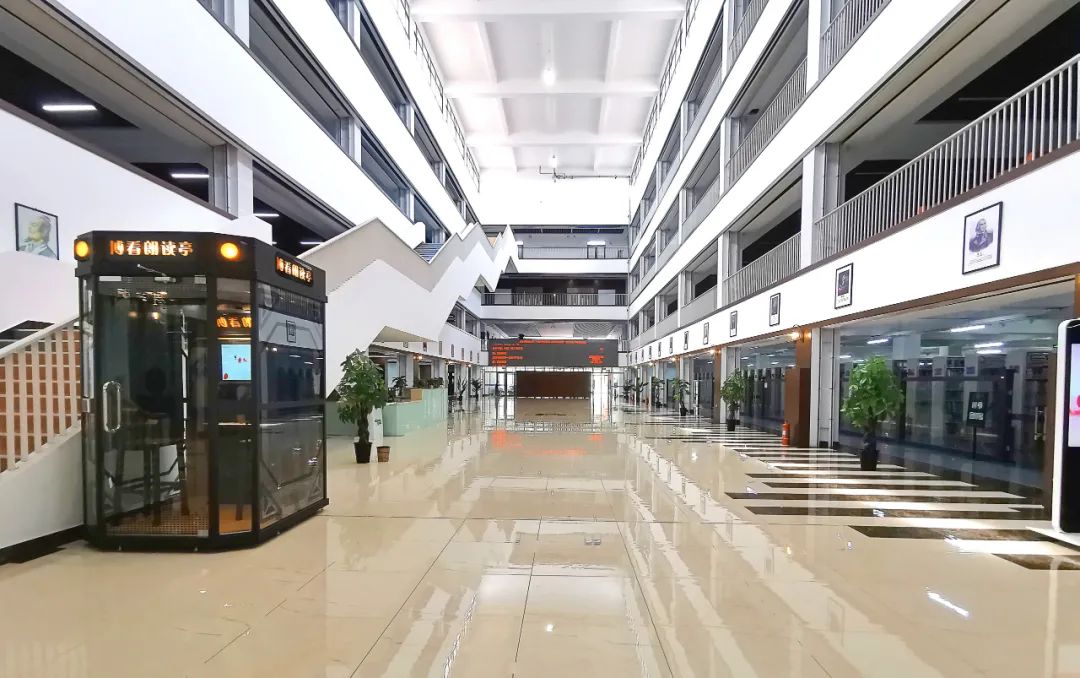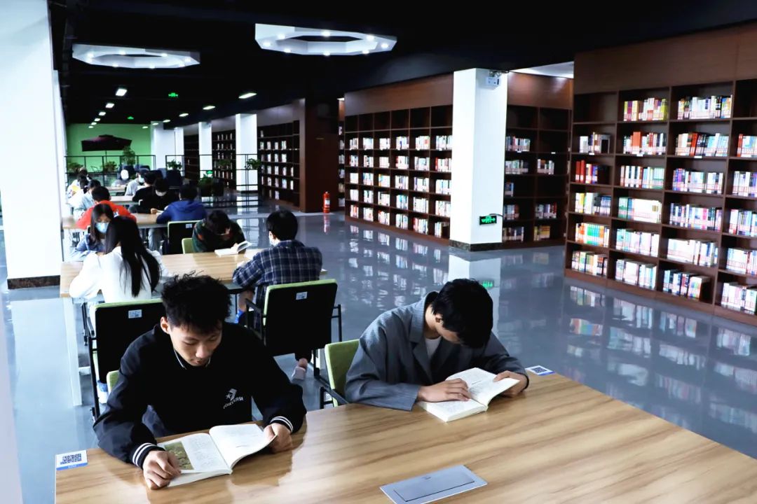 在内部空间设计上,图书馆改变传统的自习室、阅览室、借阅室的布局,以开放场地(平台)的方式,精心设置了智慧借阅室、沉浸式研学间、数字平台、网红书店、阅读交流咖啡厅和学术报告厅,最大限度把图书管打造成为多服务、多特色的以“放松心灵、自由安静、徜徉悦读”体验为主的空间建筑体,让她成为如海明威所说的“一个干净明亮的地方”。