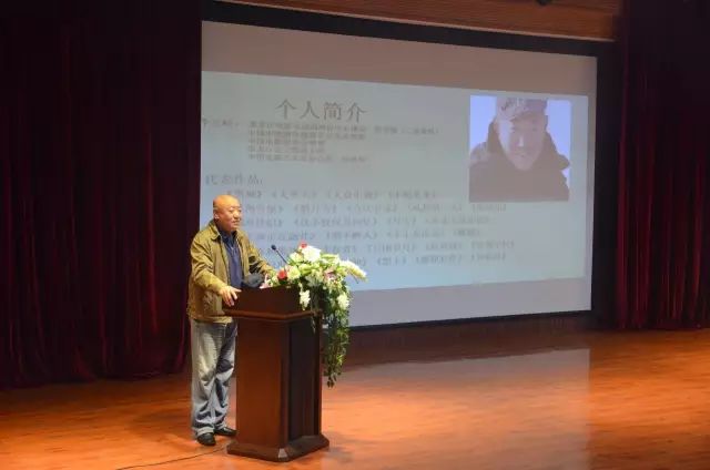 注:著名导演李文岐在图书馆演讲