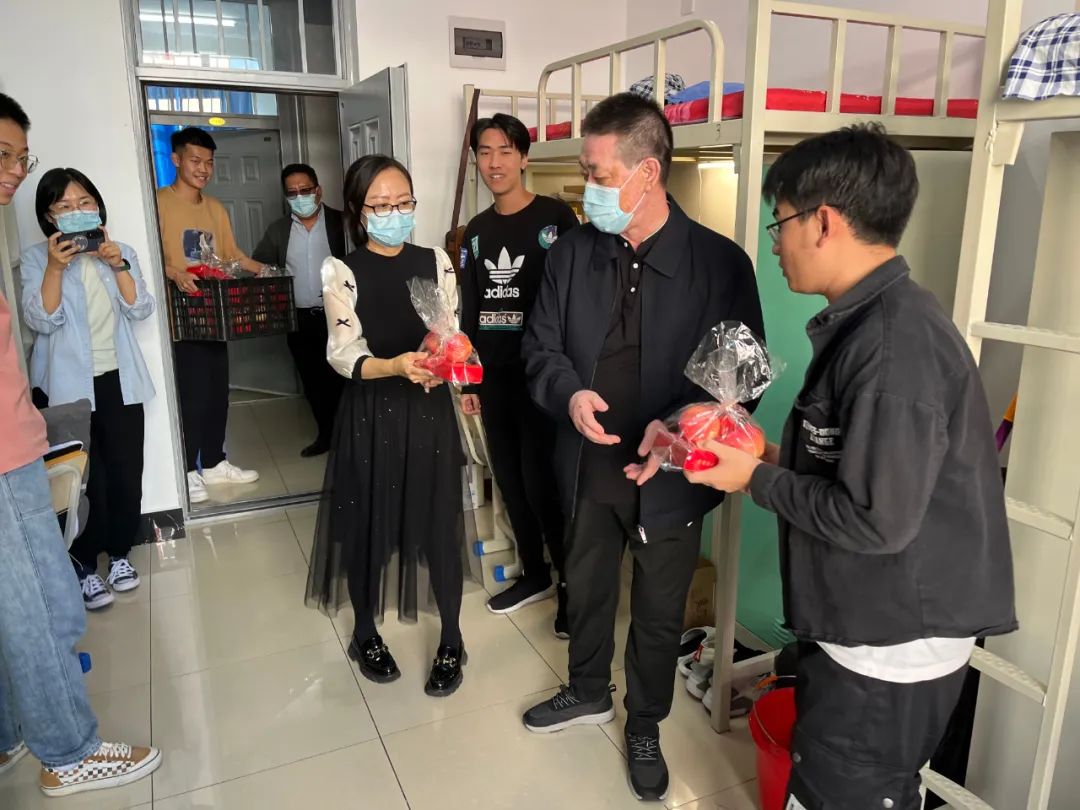 注:信息与机电工程学院院长苏健民、党总支书记邹玲玲邹,来到学生寝室,送去节日的关怀和问候,让同学们感受到家的温暖