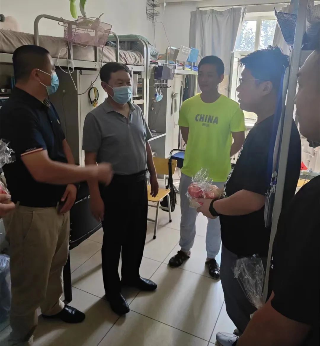 注:在学生宿舍,秦智伟向同学们致以节日的诚挚问候和美好祝愿