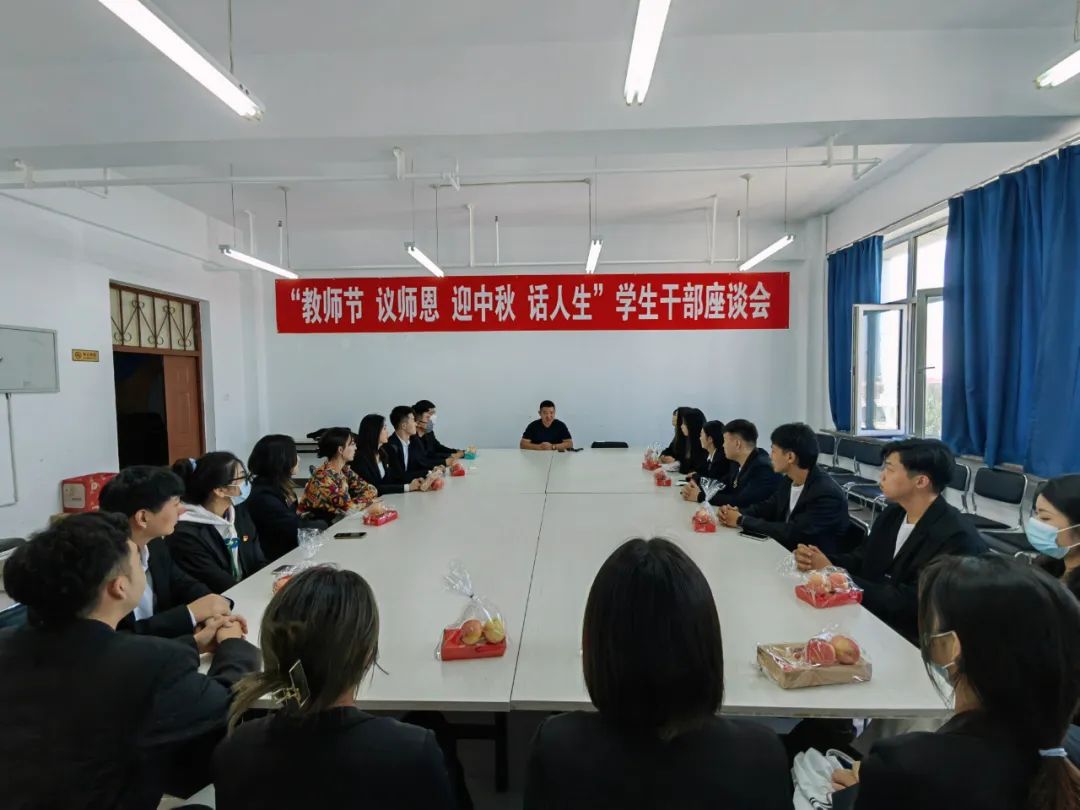 座谈会上,同学们踊跃发言,表达了教师节祝福,分享了在学校学习生活的乐事喜事和师生趣事。学院的领导、老师介绍了学校迎“双节”的各项活动和下一阶段教师育人的具体举措。谈笑间,师生一同将爱校荣校的感情和携手向未来的美好希冀融入喜迎佳节的欢乐气氛中,让四海相聚以校为家、师生相助以校为荣的感情更加厚重。