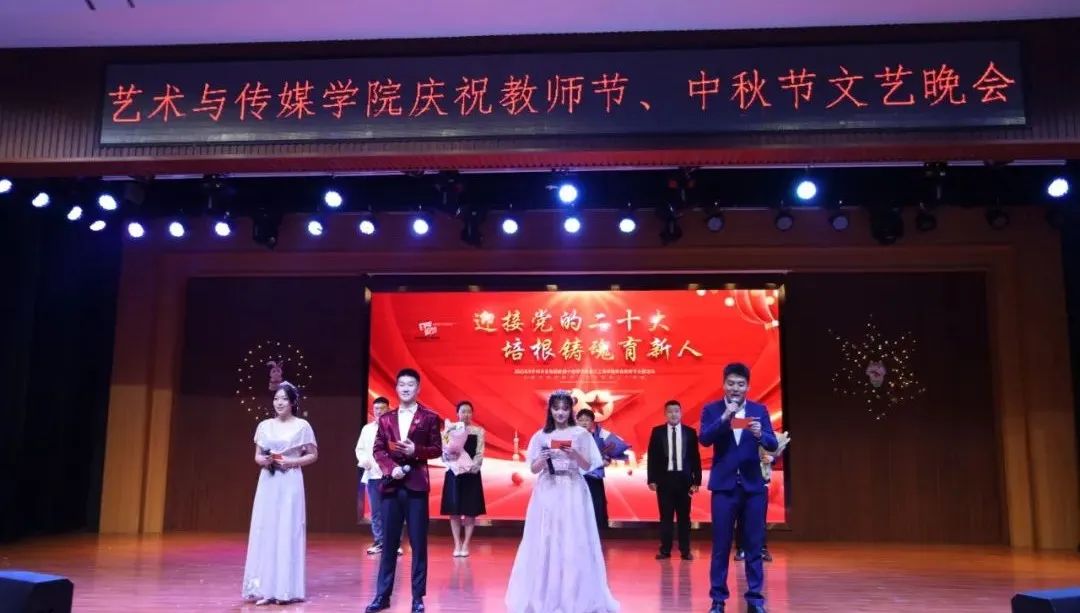 以上四图:艺术与传媒学院“双节”联欢会现场激情四射,歌曲串烧、爆笑小品、民族舞蹈……精彩丰富的演出节目,展示了师生的文艺才华,也表达了情满中秋、月圆工商的美好祝愿。