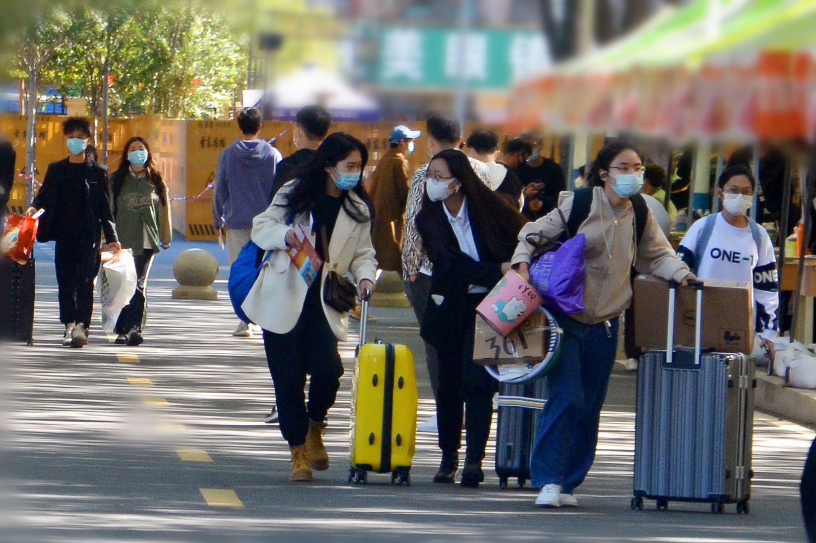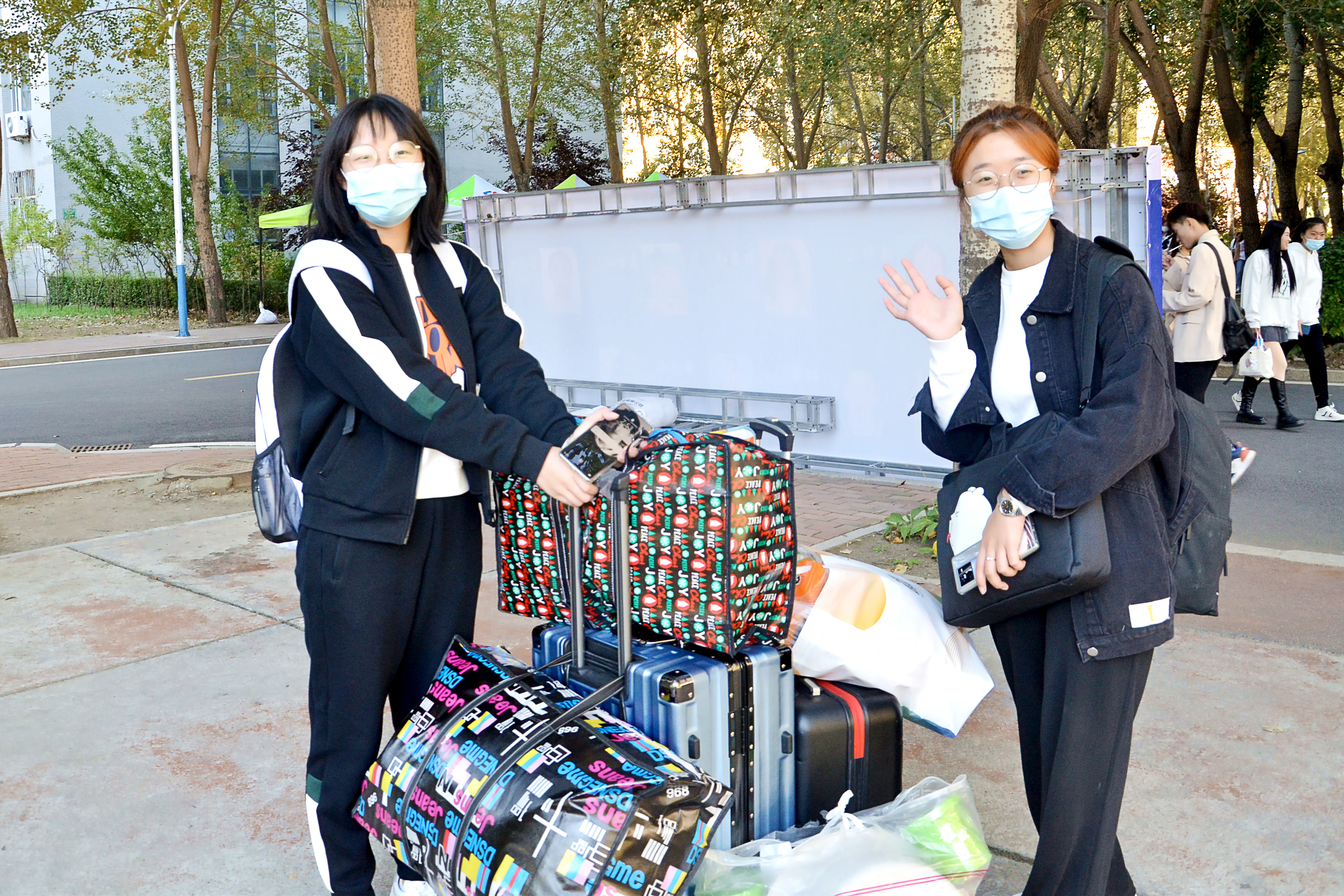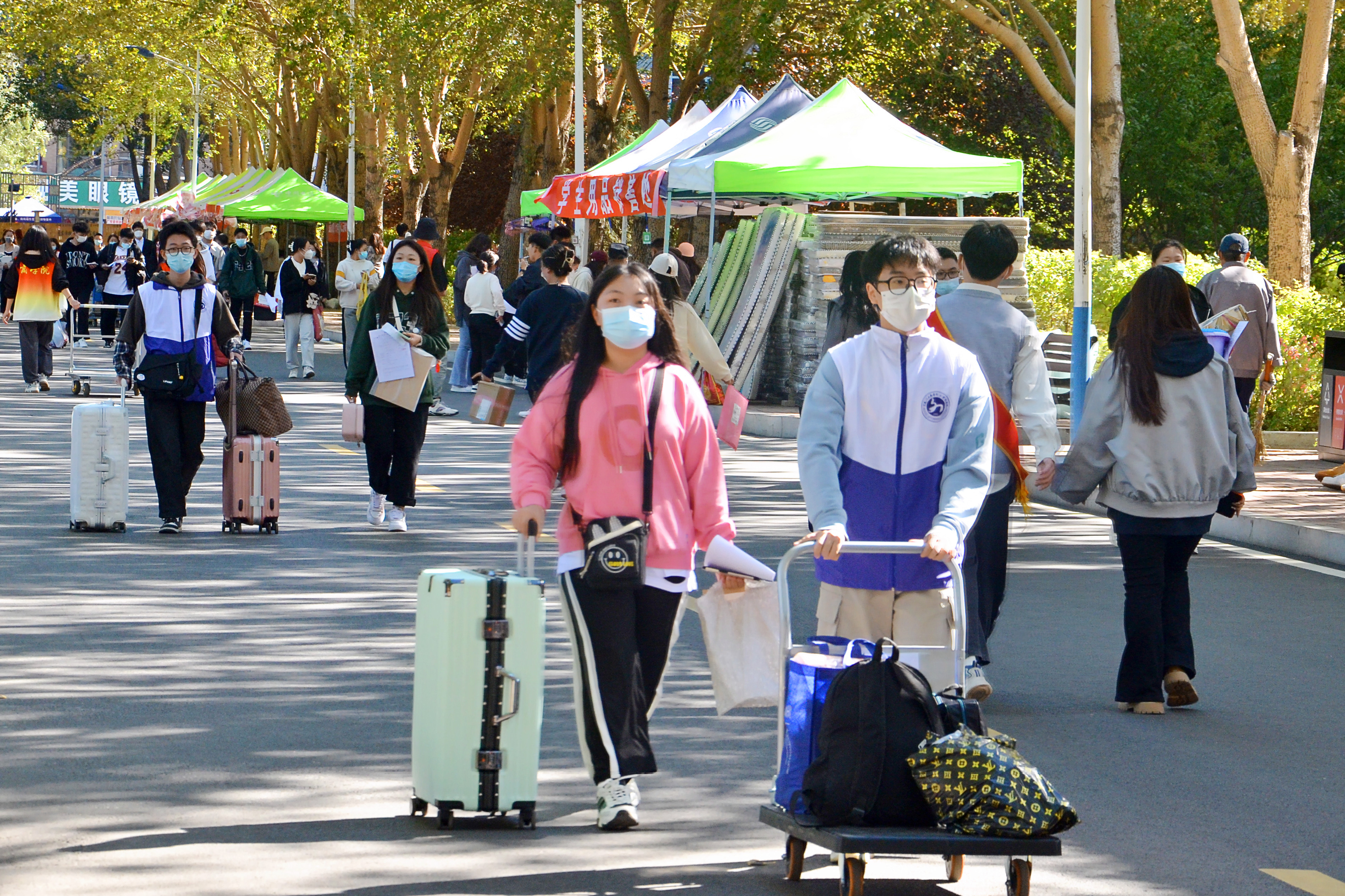 新生到校后,在经过查验健康(行程)码、核酸检测报告、测量体温、身份核验、行李消杀后,方可有序进入校园。