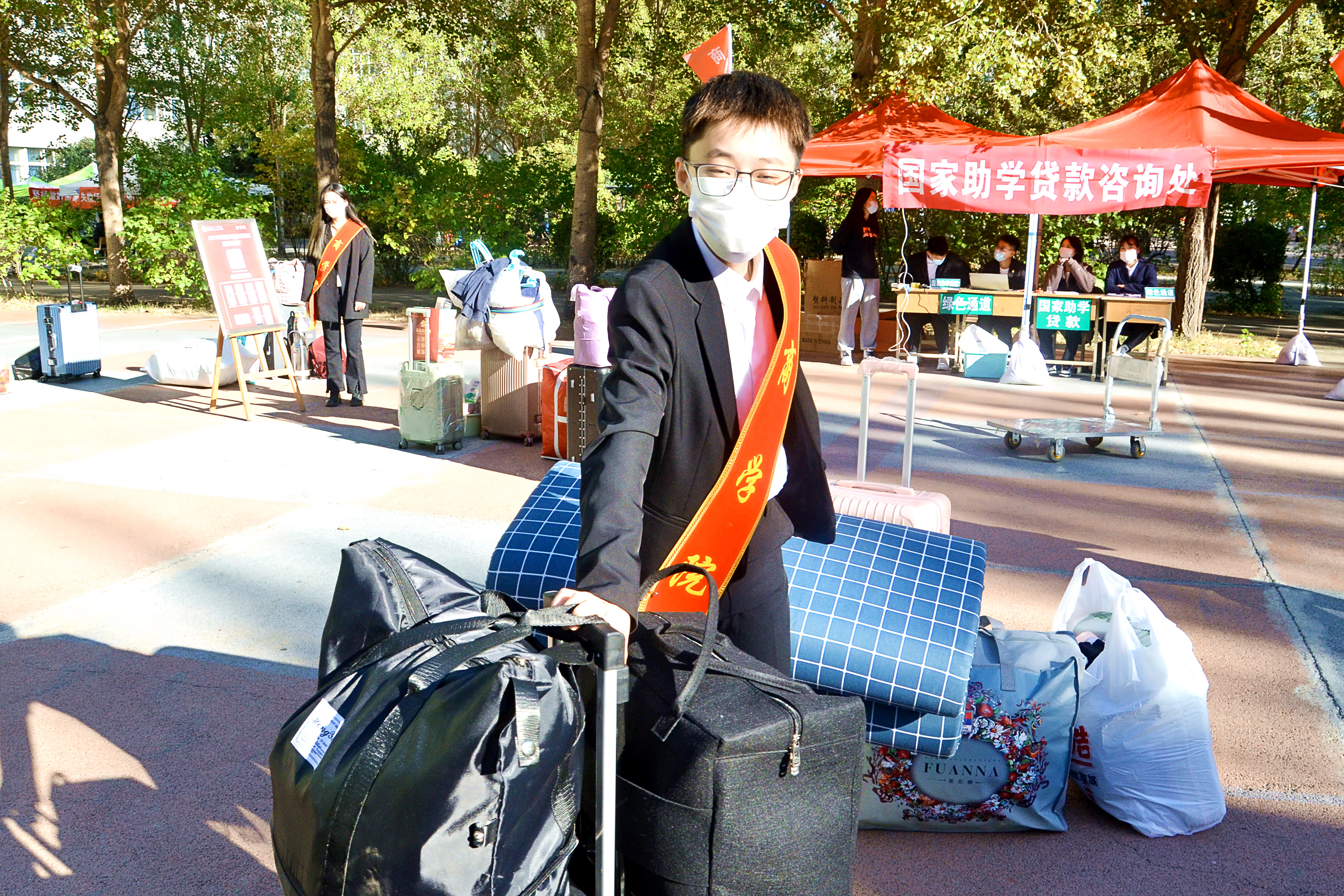 迎新现场开设了“绿色通道”,提供国家助学贷款、国家奖助学金等咨询服务,帮助家庭经济困难新生无忧顺利入学,还贴心的为新生提供了爱心大礼包,精心准备了牙膏、毛巾、保温杯等生活用品。