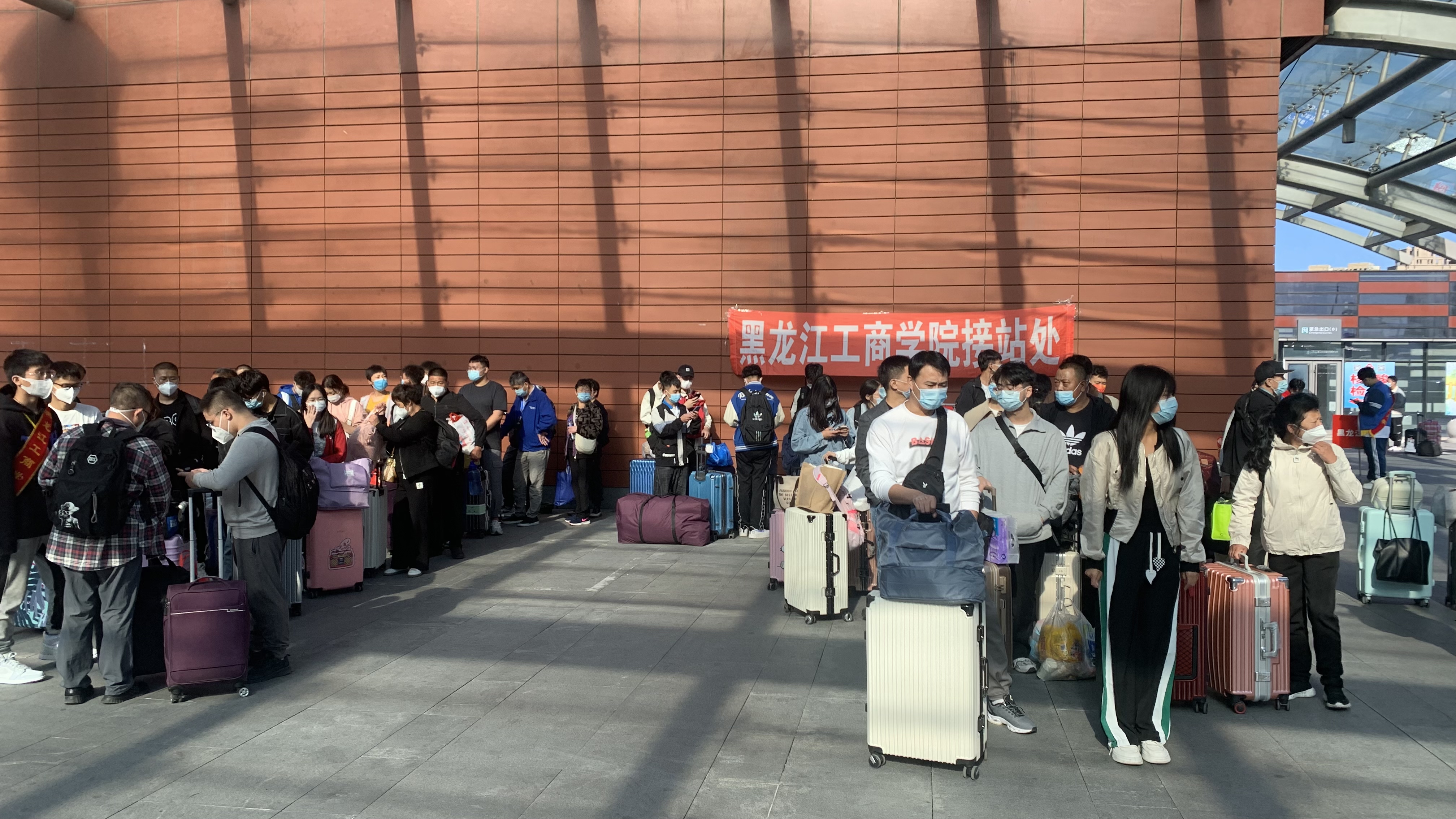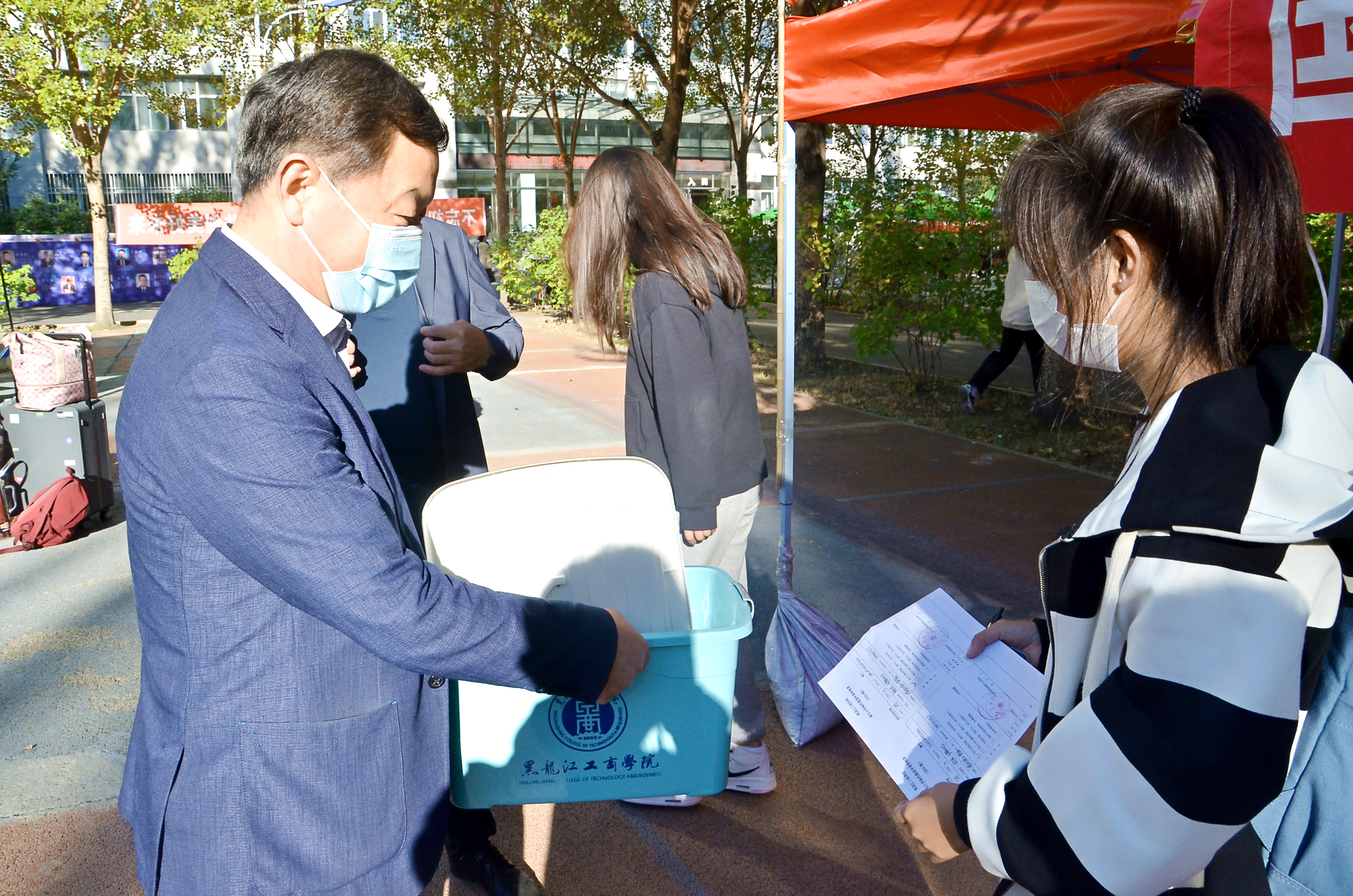 为了让新生“点对点”更方便快捷的来到校园,学校分别在哈站、哈西站、哈北站和新疆大街地铁口设置了接站大巴车,新生们在志愿者的引导和帮助下,安全抵达学校。