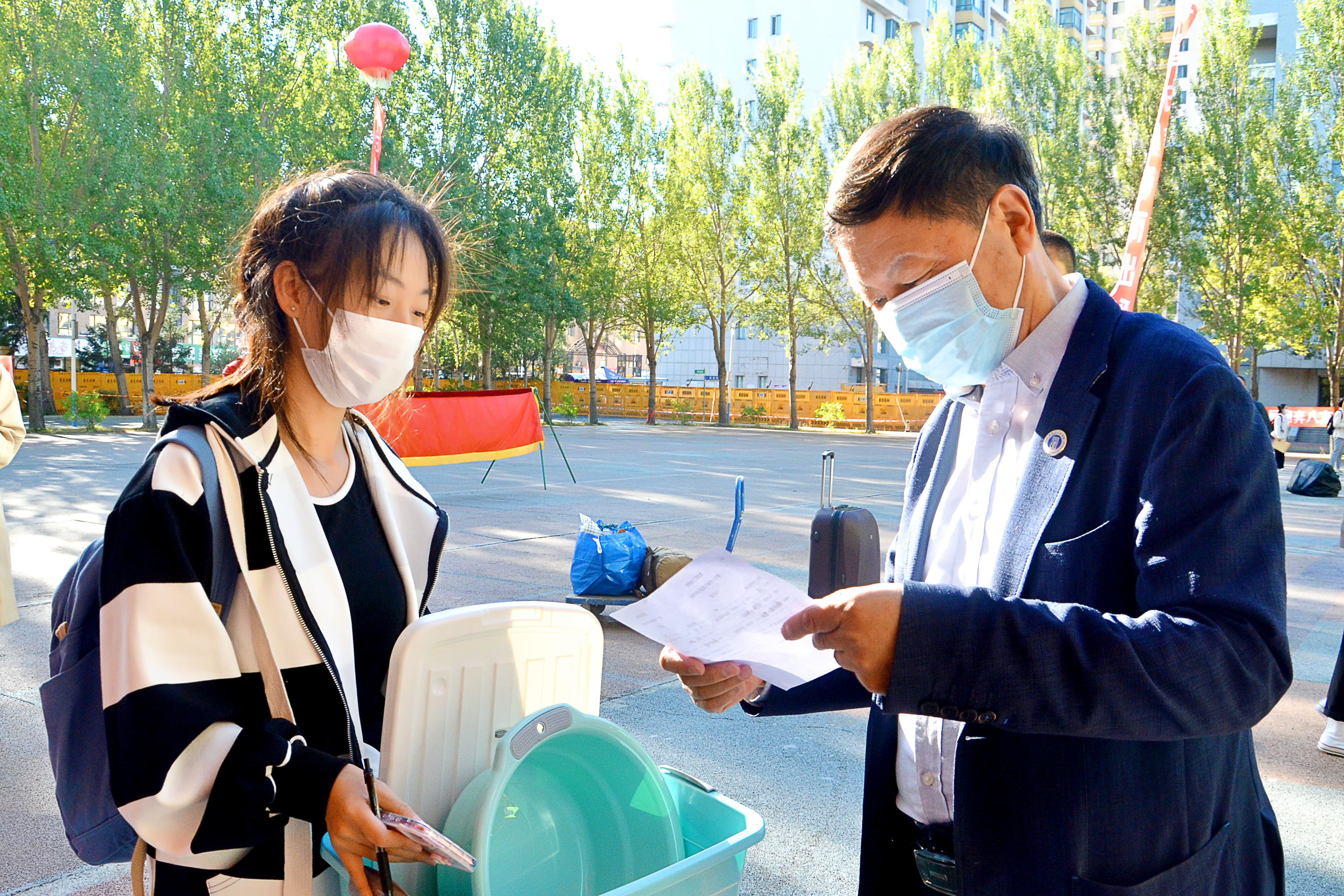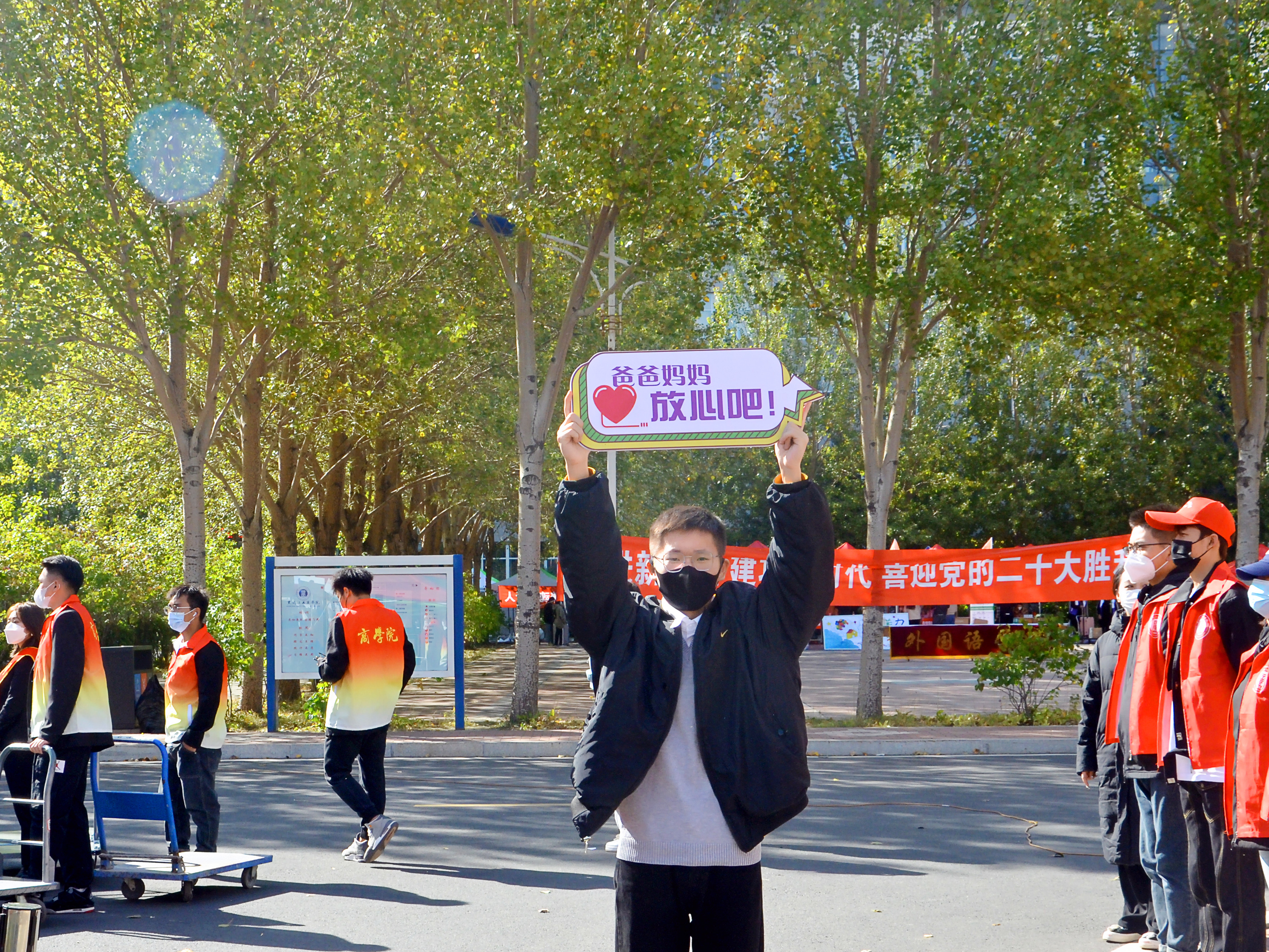 此外,学生处在开设“绿色通道”,提供国家助学贷款、国家奖助学金等咨询服务的同时,还贴心的准备了涵盖基本生活、防疫用品的爱心大礼包,帮助新生无忧顺利入学。儿行千里母担忧。在校外焦急等待的家们,眼里满是对孩子的不舍。“看到报到秩序井然有序,志愿者热情周到,孩子顺利进入寝室,我们就放心了。希望他们在大学里带着父母的重托健康成长,放飞梦想!”一位家长说。