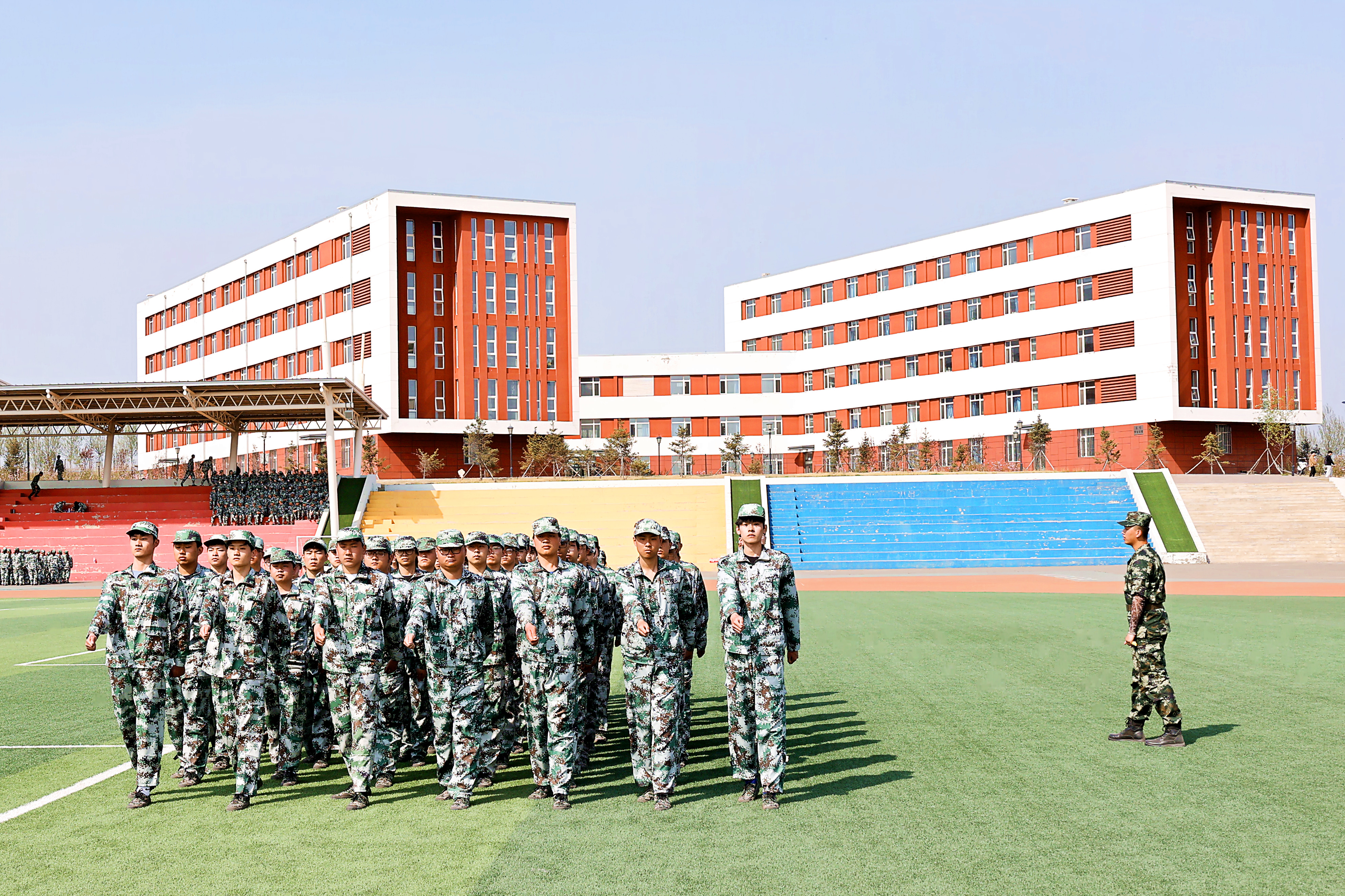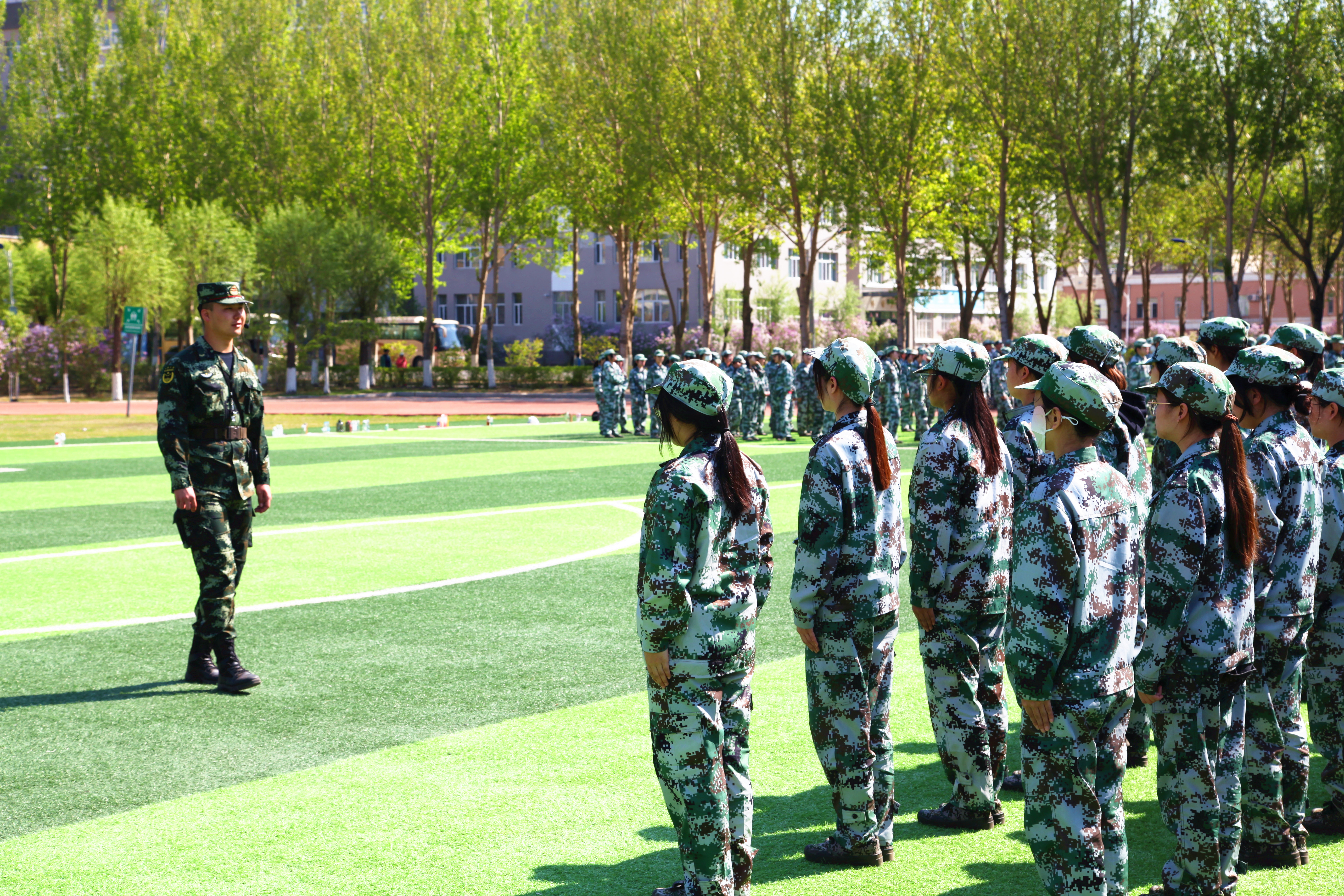 五月的校园,丁香盛放下,橄榄绿扮靓了整个校园。以训促练、以训促学,军训,既然是责任,也是期许;既是要求,也是答卷。学校坚持思想引领,利用国防教育课程独特的铸魂优势,用人民军队忠于党、忠于人民的鲜亮底色教育引导学生,策划了一系列育人导向鲜明的教育活动,将训练场变成素质提升、学风养成的大课堂。