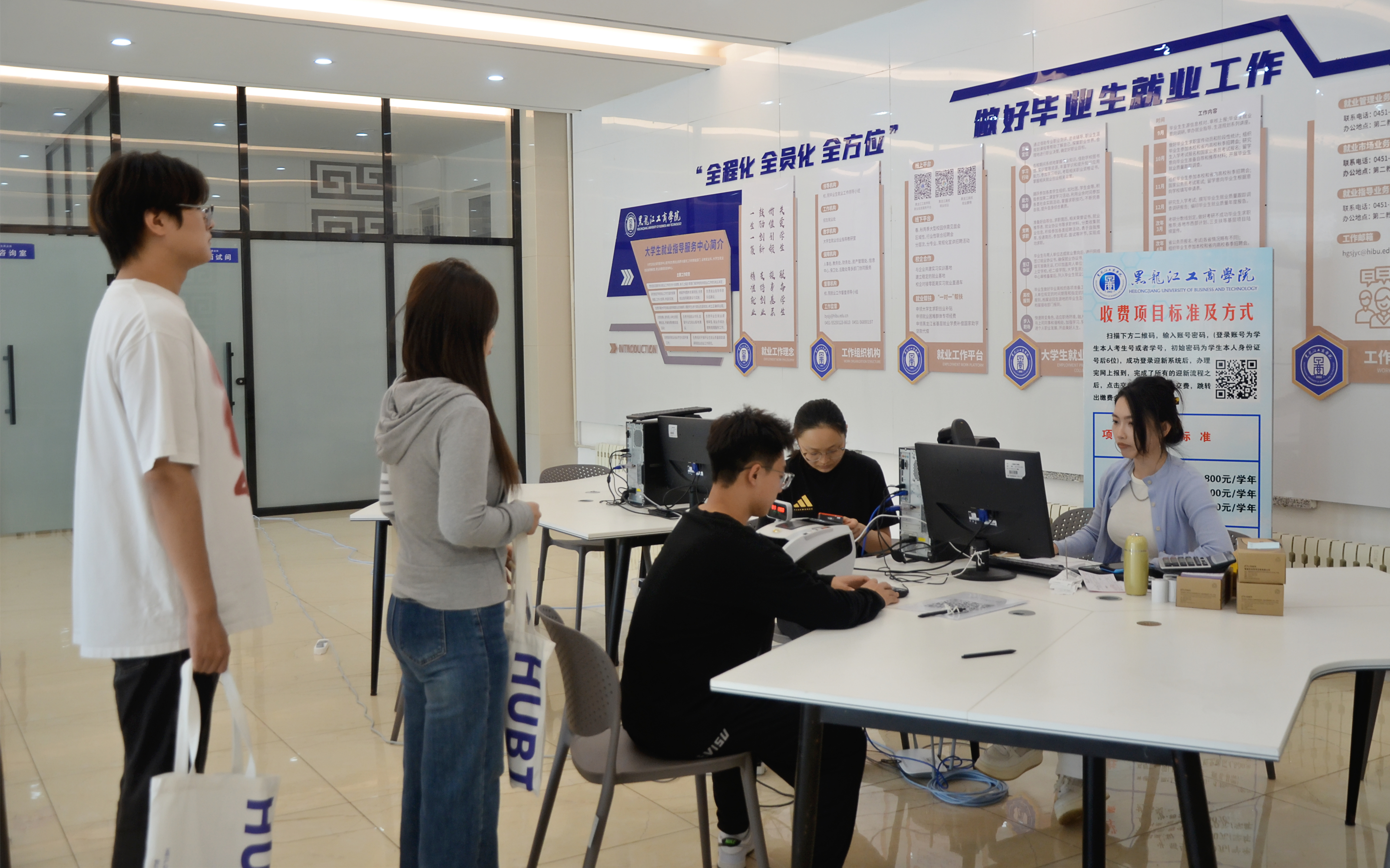 今年,学校进一步优化“一站式”迎新系统。新生在收到录取通知书后即可完成信息登记、住宿申请、缴费等手续,报到当天仅需刷卡核验,实现全程“无纸化、零排队”,全程高效便捷。