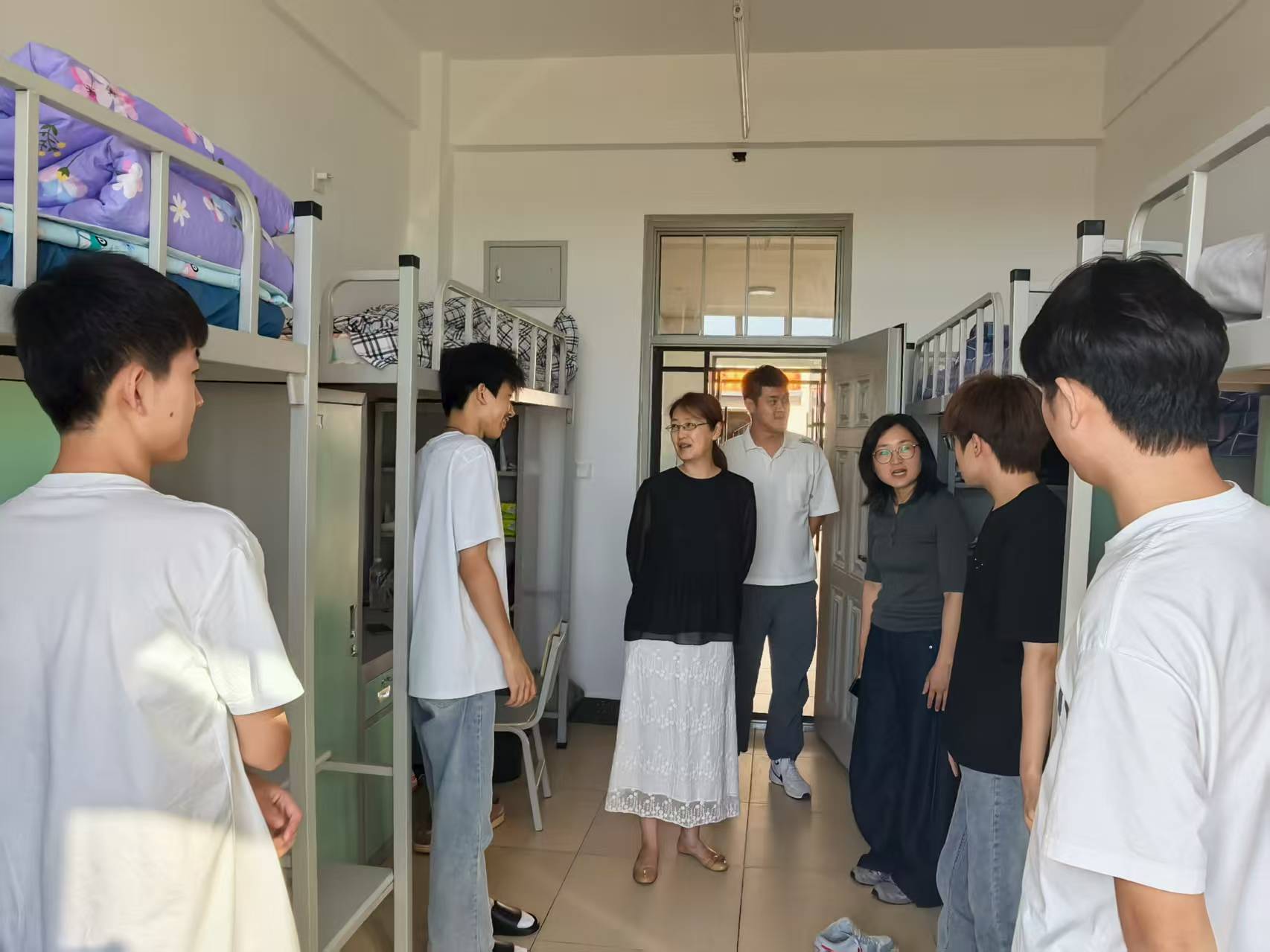 △校领导与新生和家长交流,看望慰问迎新现场工作人员