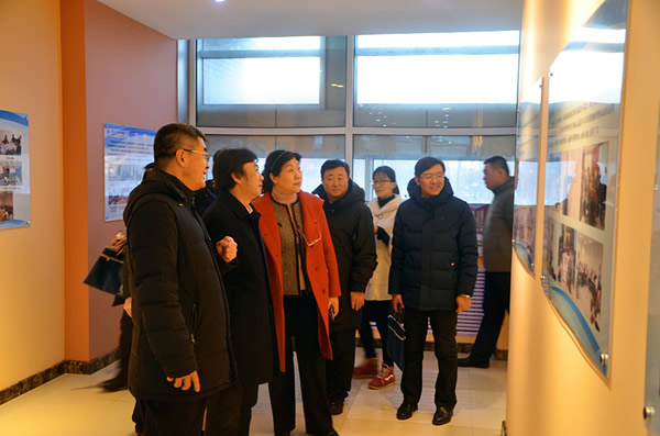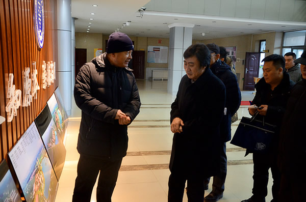 在主楼一楼大厅新校区规划图前,赵国刚向刘来祥仔细询问了新校区所在位置、占地面积和建筑面积及新校区投入使用情况。在“高校系统文明校园标兵”创建工作图片展前和产教融合和校园文化成果展前,赵国刚听取了徐德荣的党建工作汇报,询问了学院党支部设置、师生党员人员的基本情况。他对学院开展的“读、写、讲、用”四维一体的理论武装模式给予肯定。