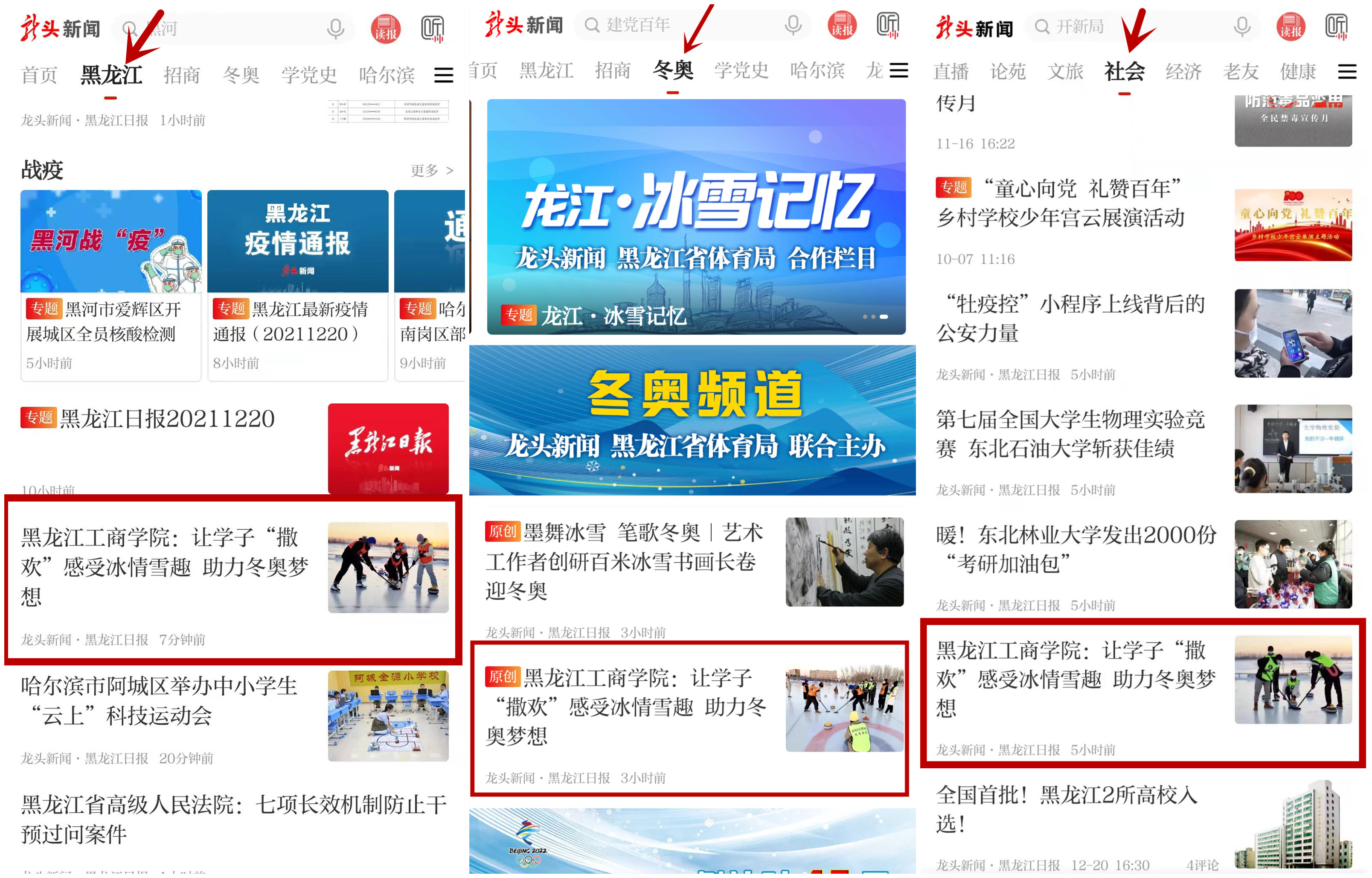 注:黑龙江日报(龙头新闻)“黑龙江”“冬奥”“社会”三个主栏目报道