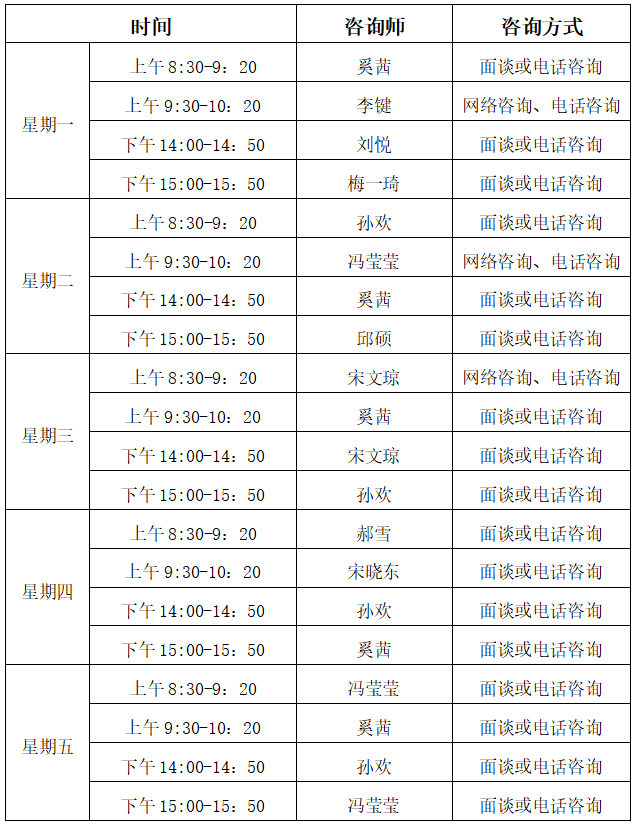 服务地点:二教105室/疫情管控期间线上咨询