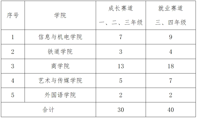 各二级学院分赛道组织比赛,选拔优秀选手推荐参与校赛。推荐名额不得超过下表人数。
