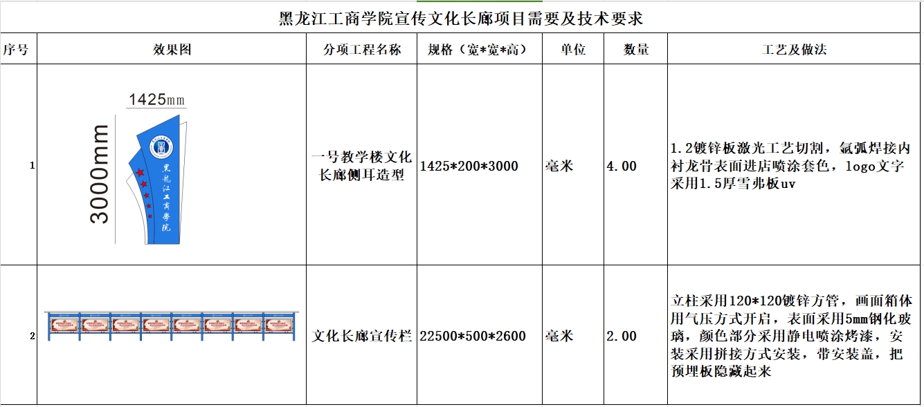 哈南校区:文化长廊侧耳造型4个、文化长廊宣传栏2组(每组8个宣传栏)