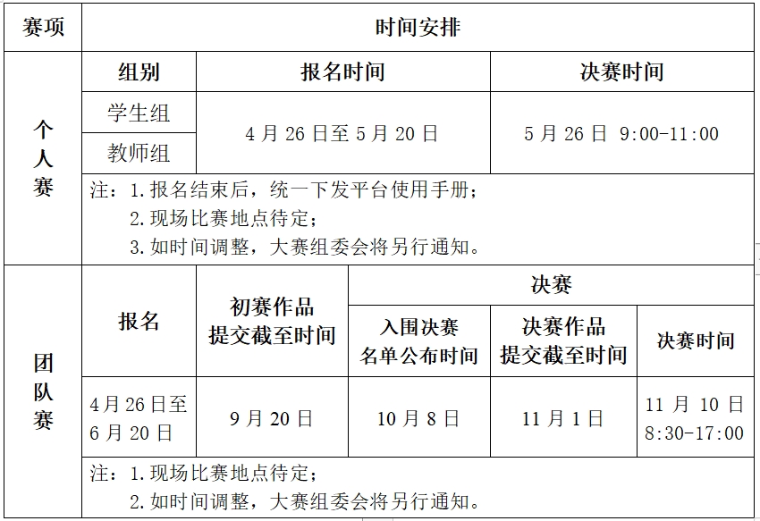 团队赛说明见附件2。