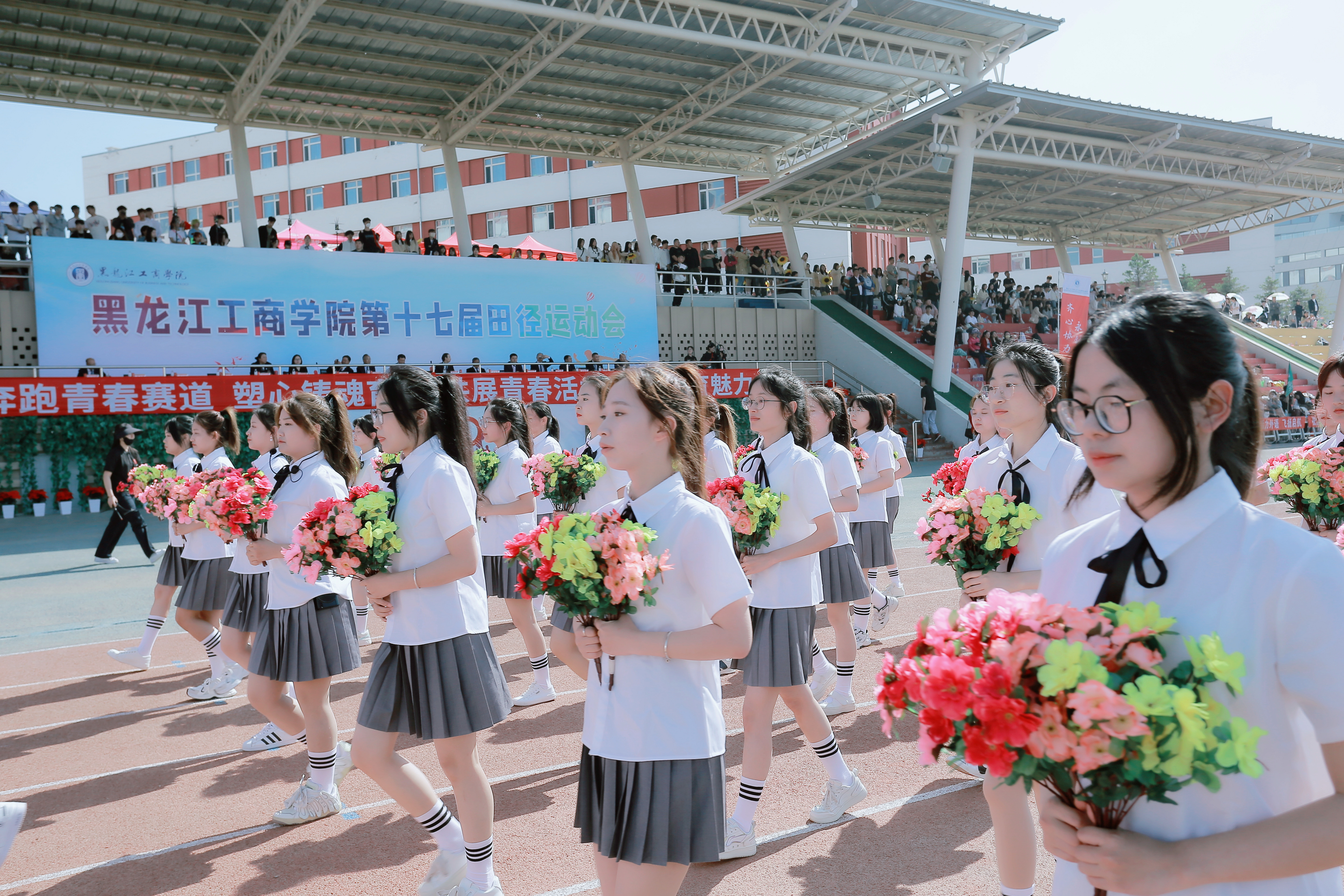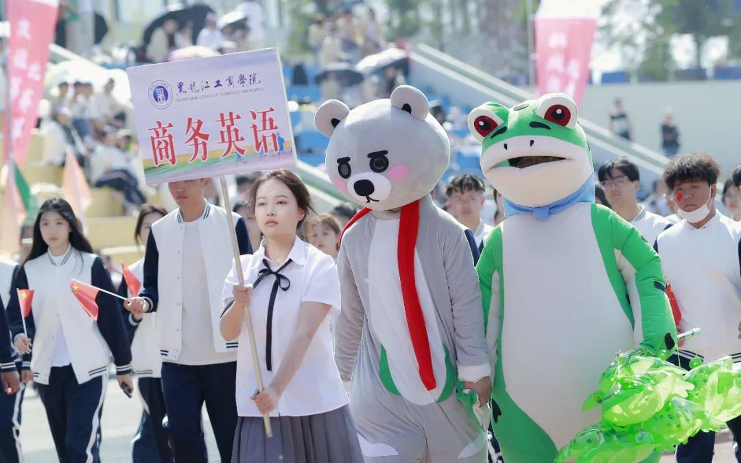 注:花束队伍展示外语学子青春靓丽风采