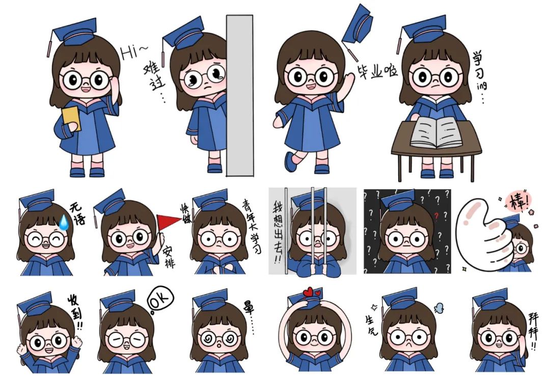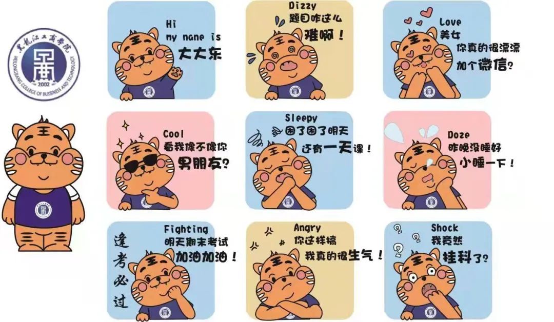 开学以来,艺术与传媒学院2019级视觉传达设计专业的印家东、程鑫、姜冬雪、潘孝文、李佳、杨海莹、张秋楠等同学并没有因为线上授课而放松要求,减缓艺术创作的步伐。受“表情包”传播方式和传播样态的启发,他们希望以生动活泼的方式把学校文化元素融入到学生网络交流沟通中,以此表达爱校情感。有了共同的目标,同学们一拍即可,在《数字插画》课王颖佳老师的鼓励和指导下,决心共同为学校量身定制一系列“黑工商表情包”,展示学校文化特质和精神面貌,打造特有的网络文创产品。