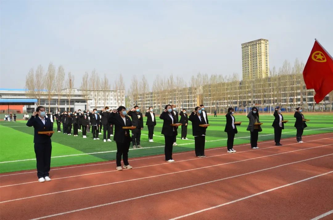 5月4日,在中国共产主义青年团建团100周年,五四运动103周年之际,校团委在运动场设立活动主场地,举行“喜迎二十大、永远跟党走、奋进新征程”新团员入团仪式,15名学生光荣入团。