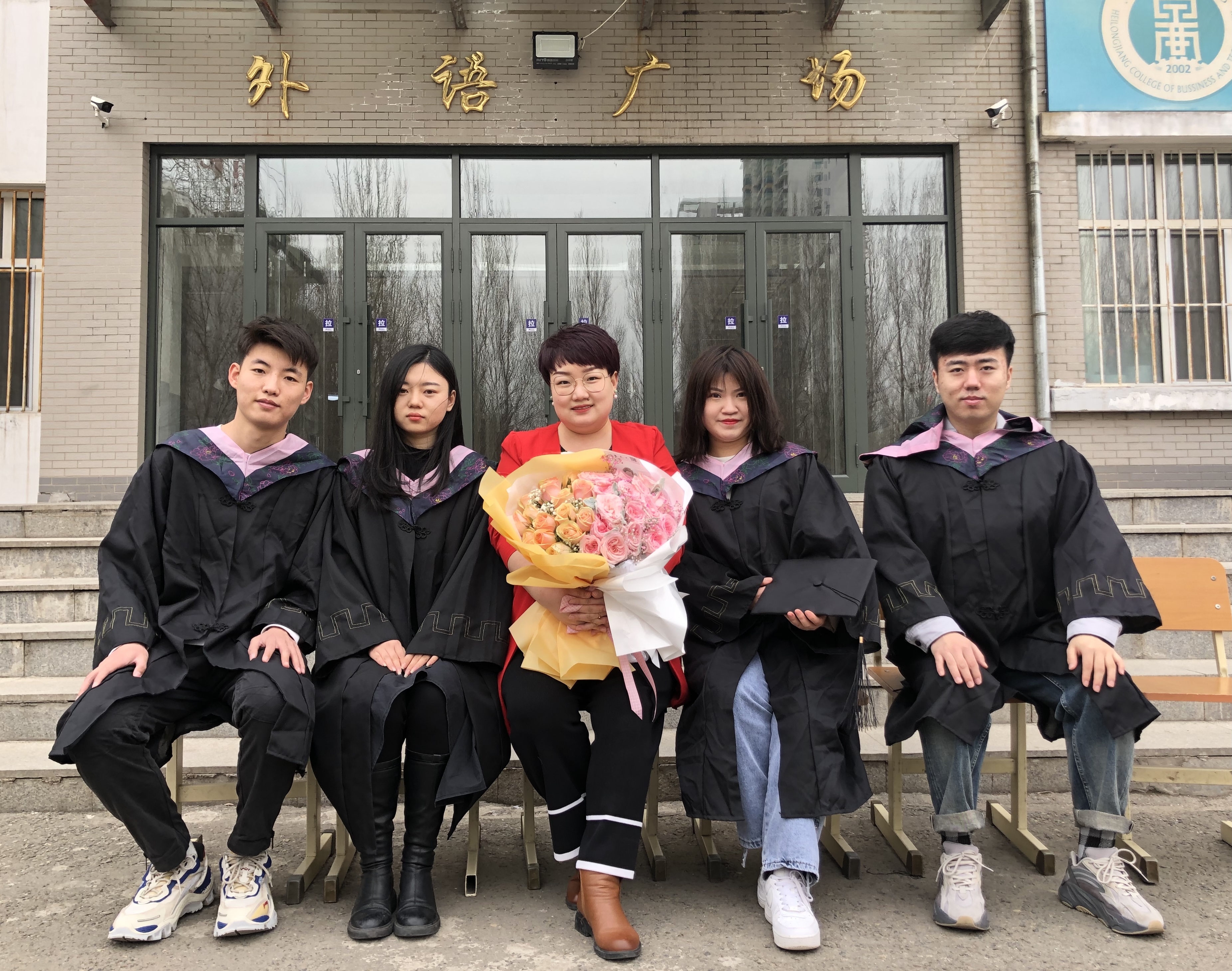 注:吴绪宁(左一)与辅导员刘萍(左三)一同合影