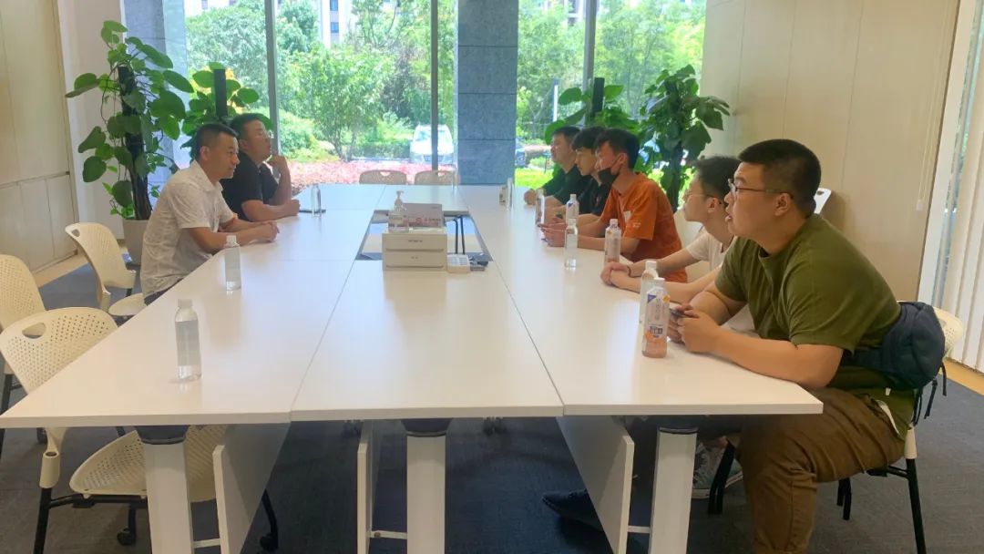 注:电子信息工程专业教研室主任张宏鹏(右三)走访企业