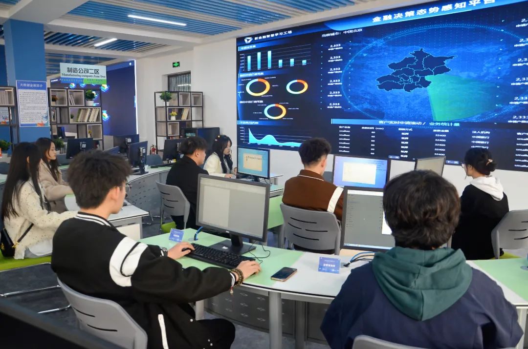 他们会充分利用课余时间,来到学校新建成的“教育部新金融智慧学习工场”,只要是门开着,他们就会走进去,听老师耐心的讲解不同实训室、不同软件功用,也会帮助老师一同维护设备。