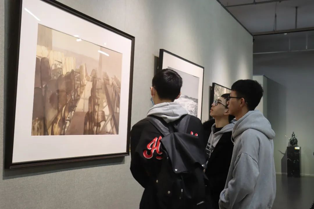 此次展览共收到来自全省各地青年艺术家们创作的825幅当代美术、设计、书法作品,作品展彰显着青年艺术家对社会生活的关注和艺术表达的探索,展现出青年创作人才在新时期的艺术风貌。学院教师们围绕本次美术作品展的主题、美术作品门类、美术作品的构思及创作流程进行指导,激发同学的创作热情,打开同学们的创作思路。同学们也结合自身所学的专业知识,从作品配色、透视关系等角度对作品发表了见解,与专业老师进行交流。