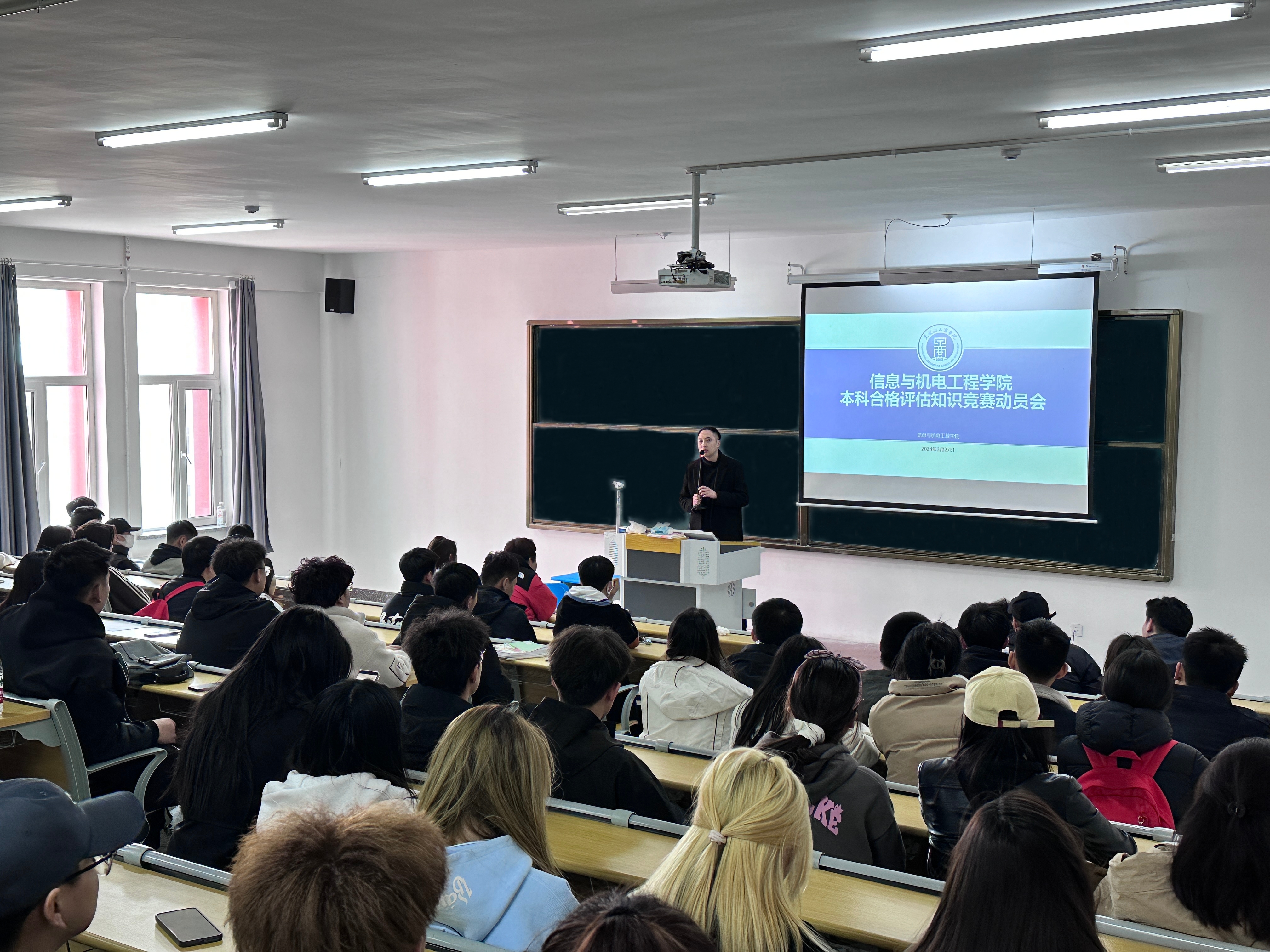 日前,信息与机电工程学院召开本科教学工作合格评估知识竞赛动员会,动员会由学院团总支书记王公男主讲。