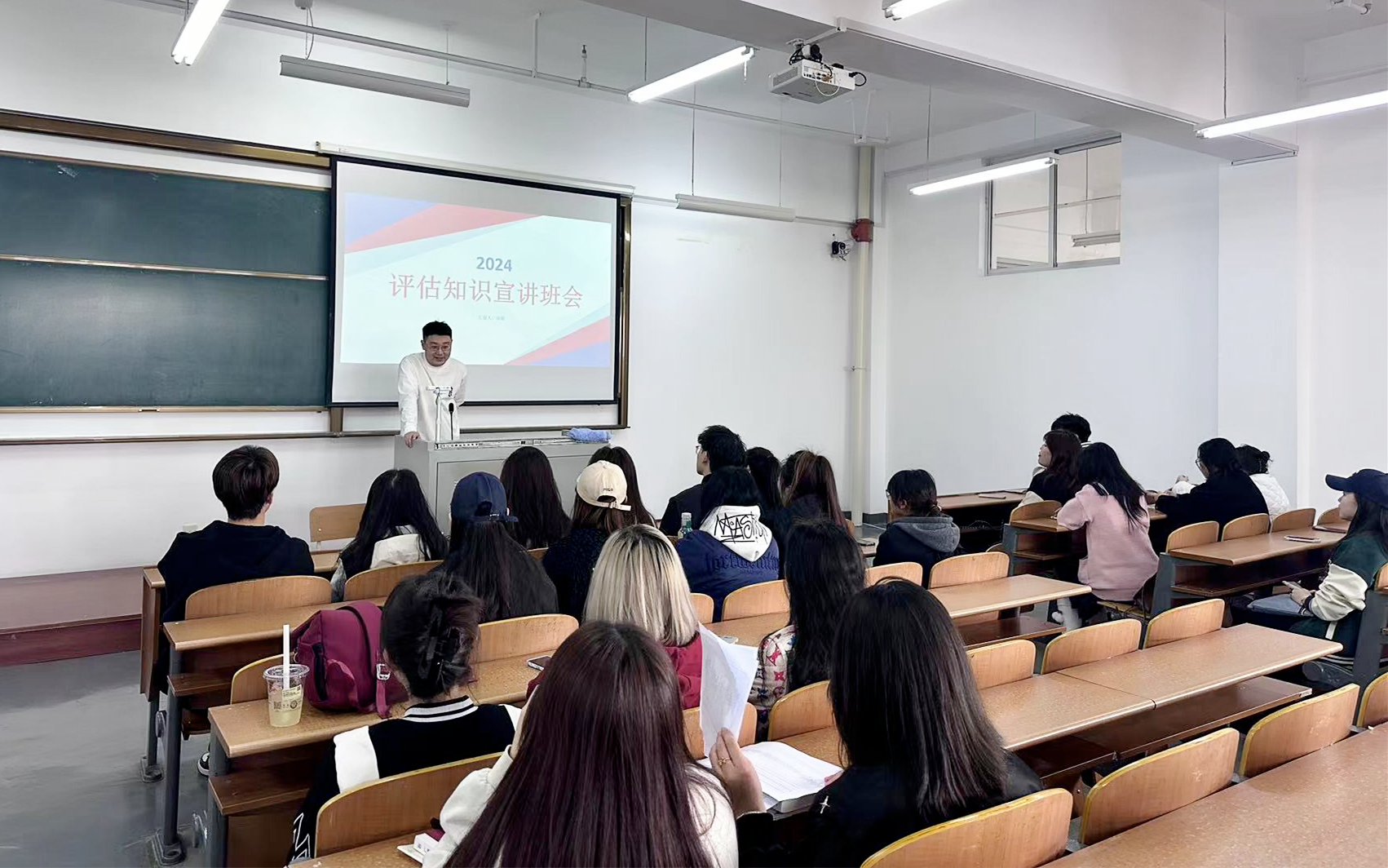 评估知识教育专题会上,学生会指导教师郎松彬倡导学生会全体学生骨干从自身做起,充分发挥自我管理、自我教育、自我服务、自我监督的服务意识,配合学院完成评估工作相关要求。
