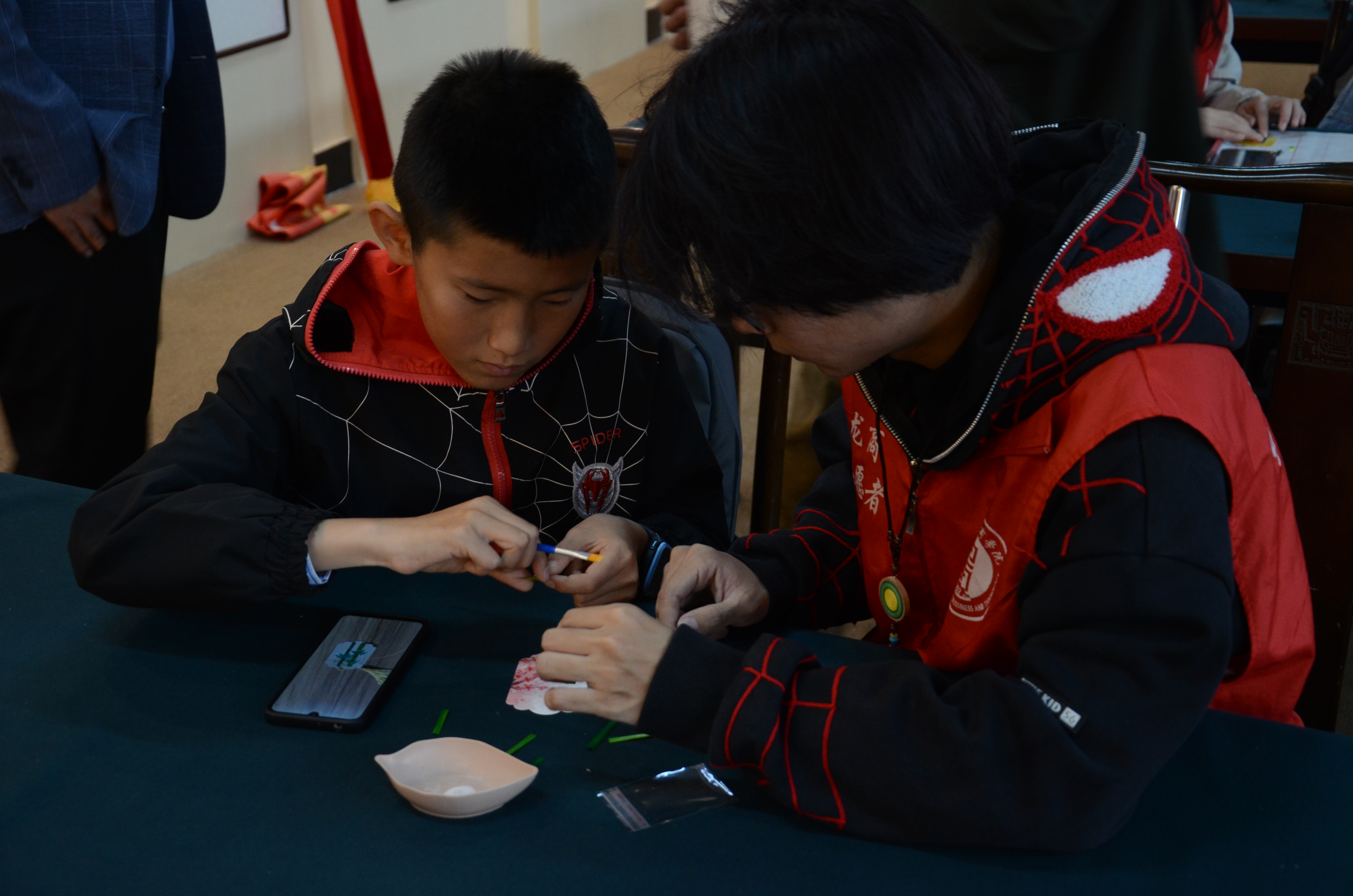 活动上,热电学校的学生们在非物质文化遗产技艺传承人、非遗传承美育浸润社团指导教师唐德滨以及大学生志愿者们的帮助下,体验黑龙江非物质文化美育浸润活动,以及中华传统文化、爱国教育、艺术启蒙等特色课程,拓宽知识学习、了解城市文化、传承红色基因。哈尔滨市热电学校师生们还参观了国学馆、黑龙江铁道文化馆、体育馆、游泳馆等。