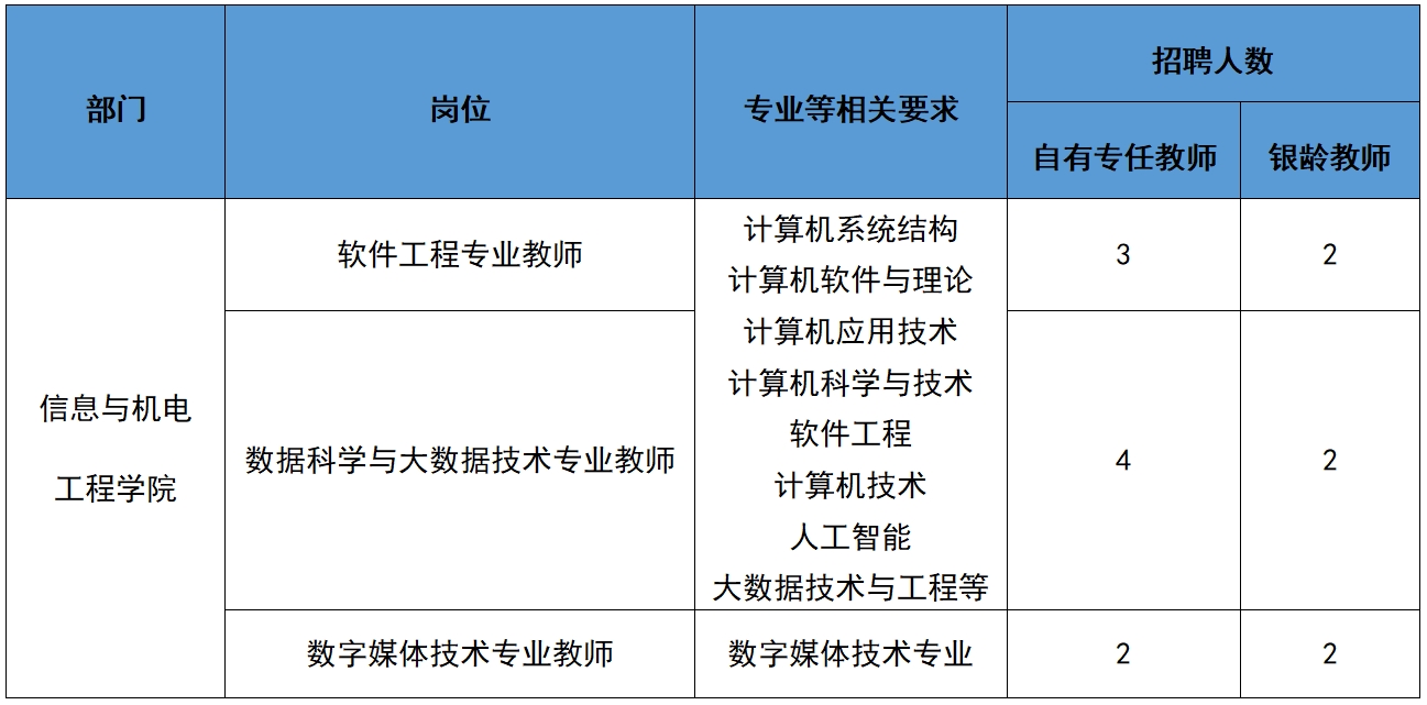 为加强师资队伍建设,更好的完成立德树人根本任务,保证高素质应用型人才培养目标的有效达成,诚邀各界优秀人才来我校工作,现向各高校和社会公开招聘人才。
