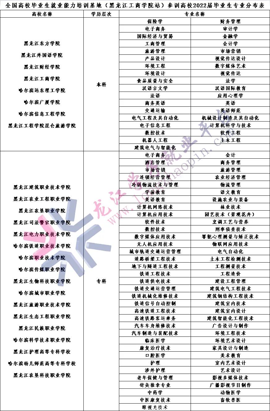 附件:全国高校毕业生就业能力培训基地(m体育【中国】股份有限公司站)参训高校2022届毕业生专业分布表