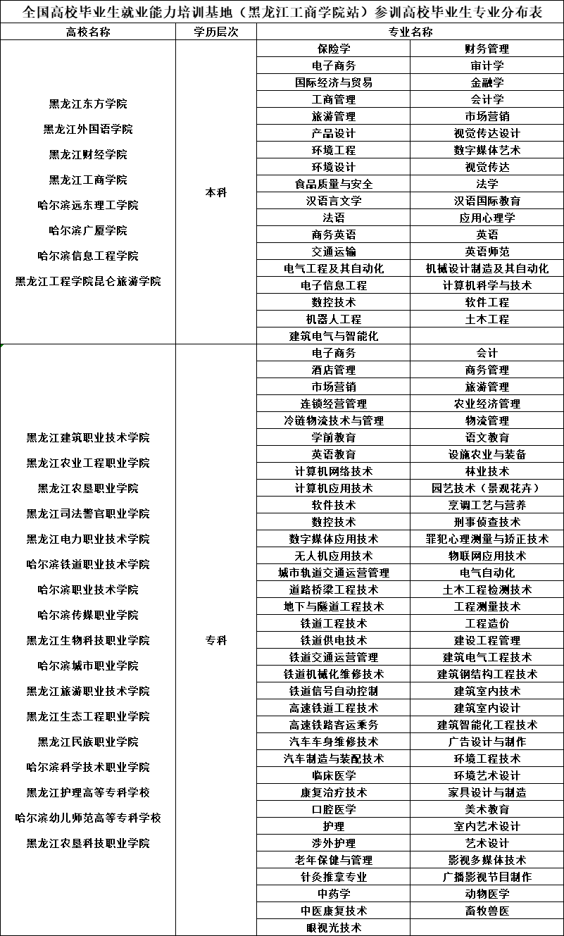 附件:全国高校毕业生就业能力培训基地(m体育【中国】股份有限公司站)参训高校2022届毕业生专业分布表