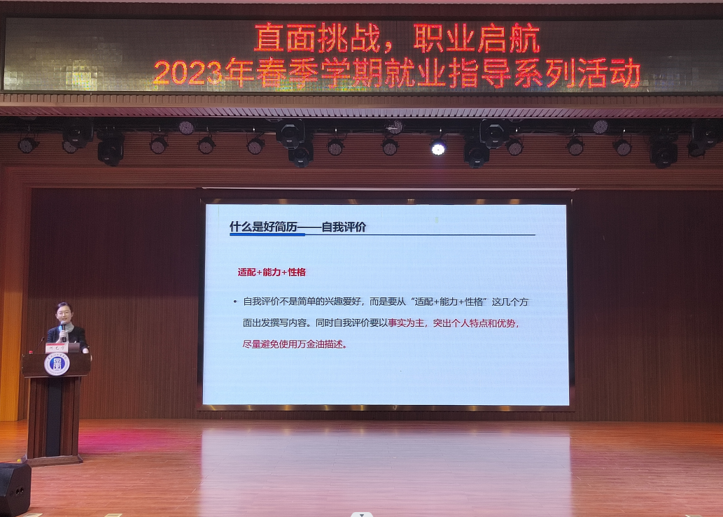 3月31日下午,2023年度首场“直面挑战,职场启航”就业指导讲座在松北校区开讲,正式拉开本年度春季学期就业指导系列活动序幕。