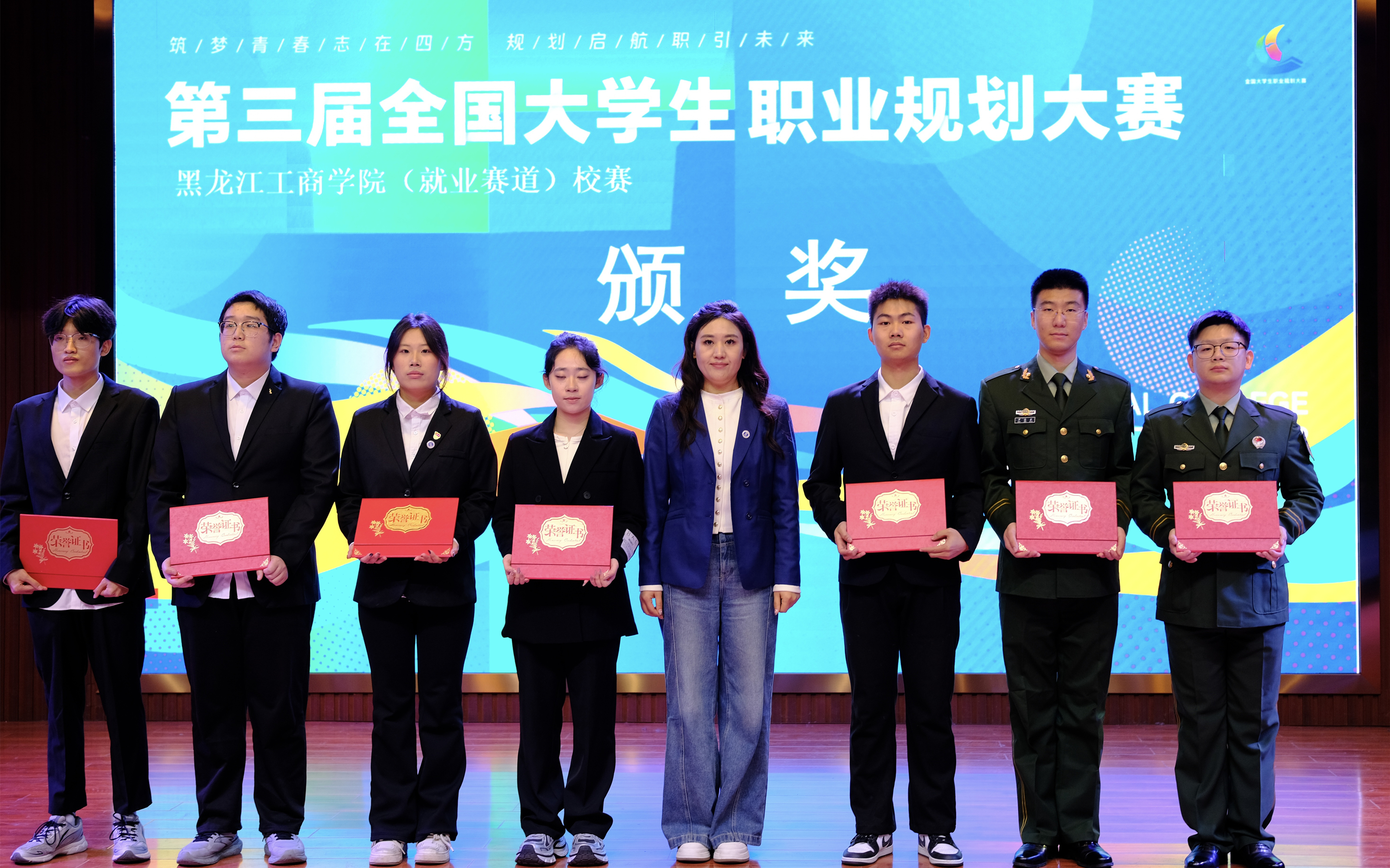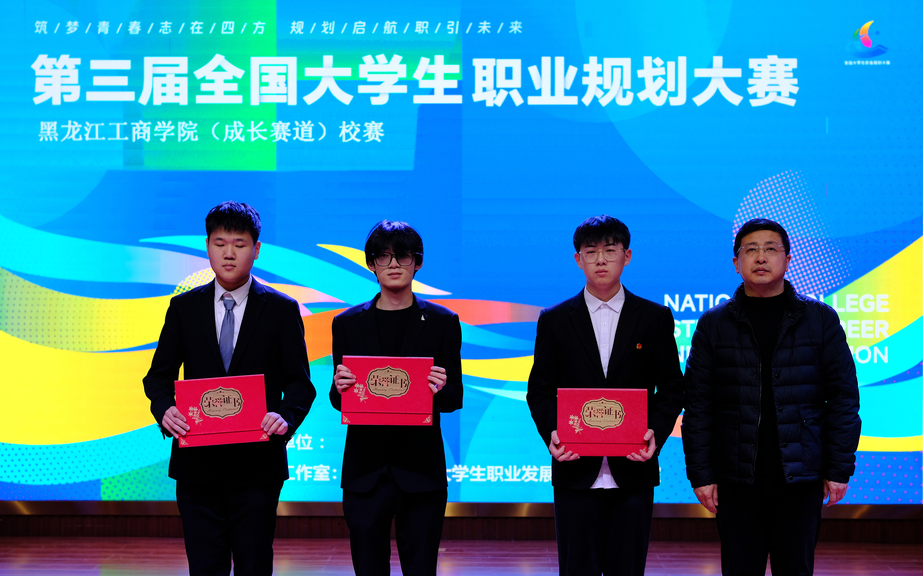 本届大赛邀请来自黑龙江科技大学、东北农业大学及企业人力资源部门的专家担任评委。决赛中,成长赛道选手通过科学分析确立职业发展方向,展示行动成果;就业赛道选手结合目标岗位,从通用素质、岗位能力到发展潜力进行全方位展示。评委们围绕职业规划科学性、个人成长路径、岗位契合度等方面进行提问点评,帮助选手进一步提升求职规划能力。