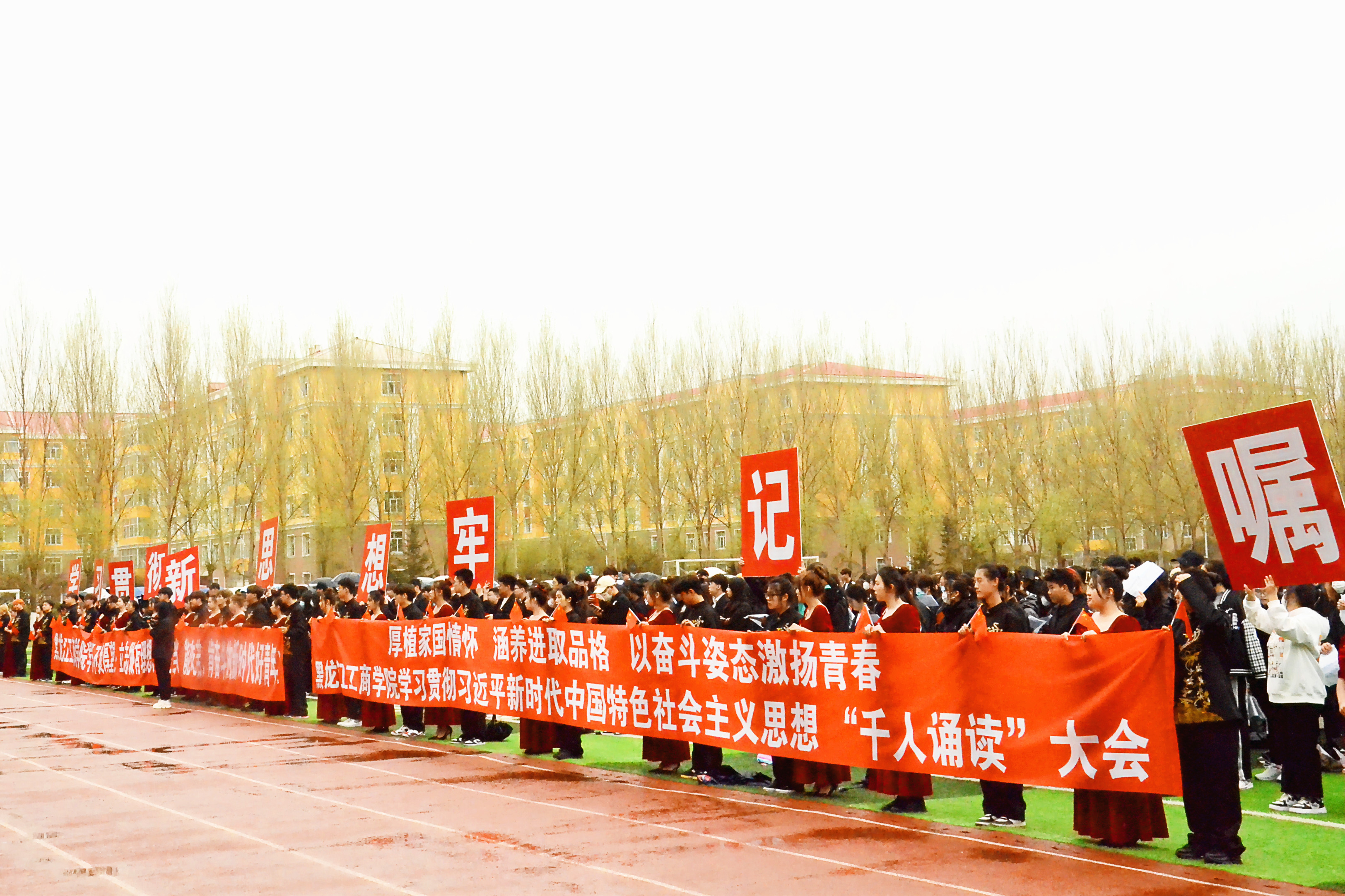 “我们要厚植家国情怀、涵养进取品格,以奋斗姿态激扬青春,不负时代,不负华年!”5月4日清晨,一场以“学习贯彻新思想 牢记嘱托建新功”为主题的千人诵读大会在m体育【中国】股份有限公司运动场举行。2600余张充满活力、朝气蓬勃的年轻面孔,不畏风雨吹袭,以集体朗读习近平总书记关于青年工作的重要论述的方式,共同庆祝五四青年节,掀起全校学习新思想的热潮,全力营造“以学铸魂、以学增智、以学正风、以学促干”的浓厚氛围。