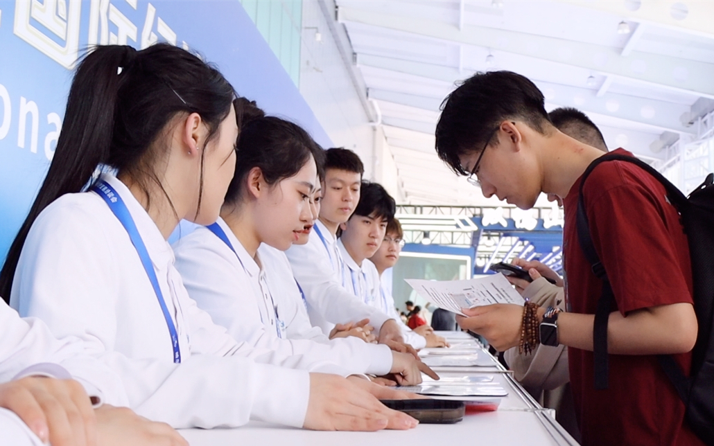 展会期间,志愿者们准备充分,对展馆布局、展区特色及参展商信息了然于心。他们准确及时地发放《观展指南》《洽谈会专刊》,主动提供细致的咨询引导。面对问询,师生以生动专业的语言,清晰介绍各展区的产业亮点、企业优势及特色展品,帮助来宾迅速把握展会概况。