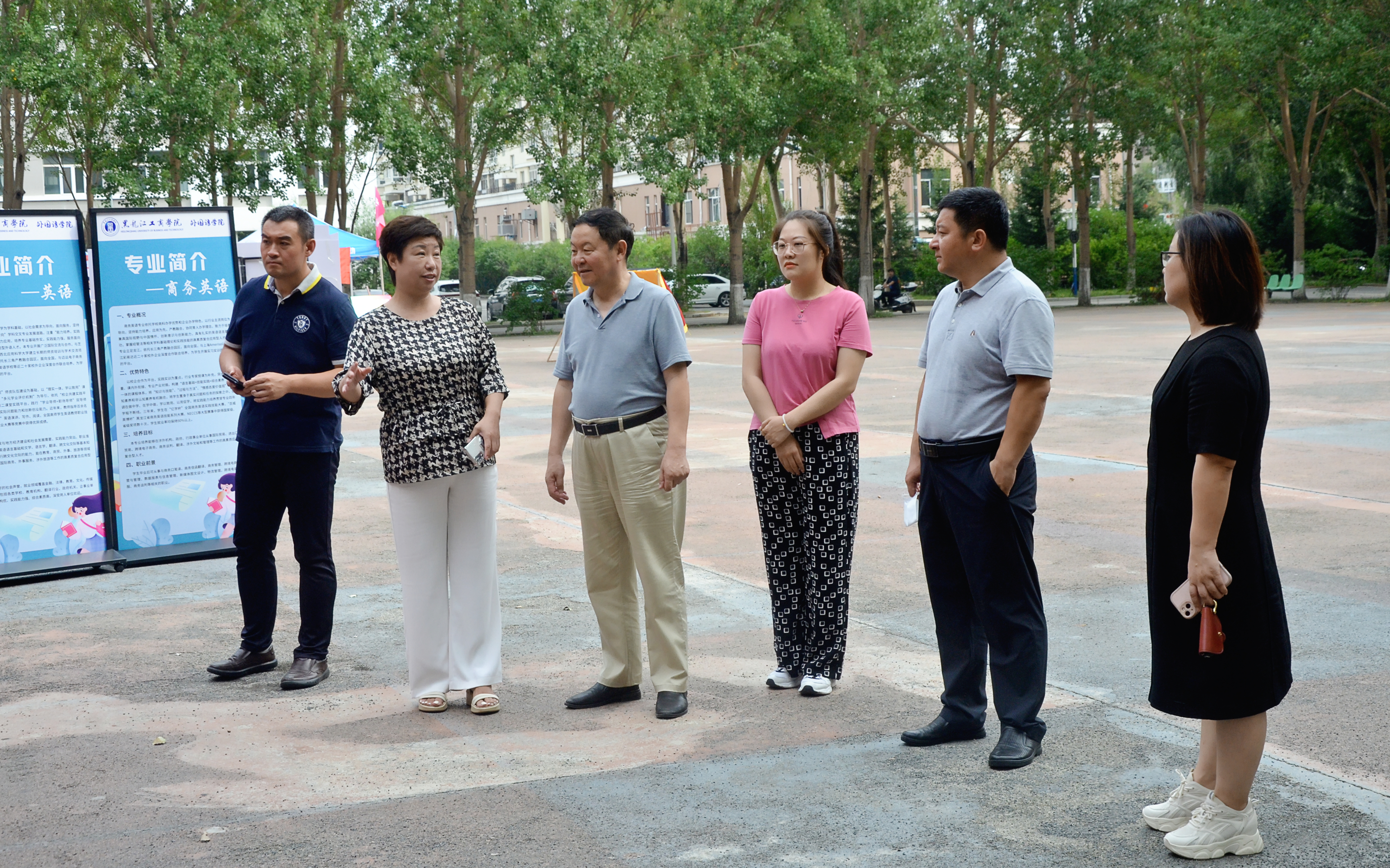 注:校长秦智伟等校领导深入报到现场看望慰问工作人员和报到学生、家长